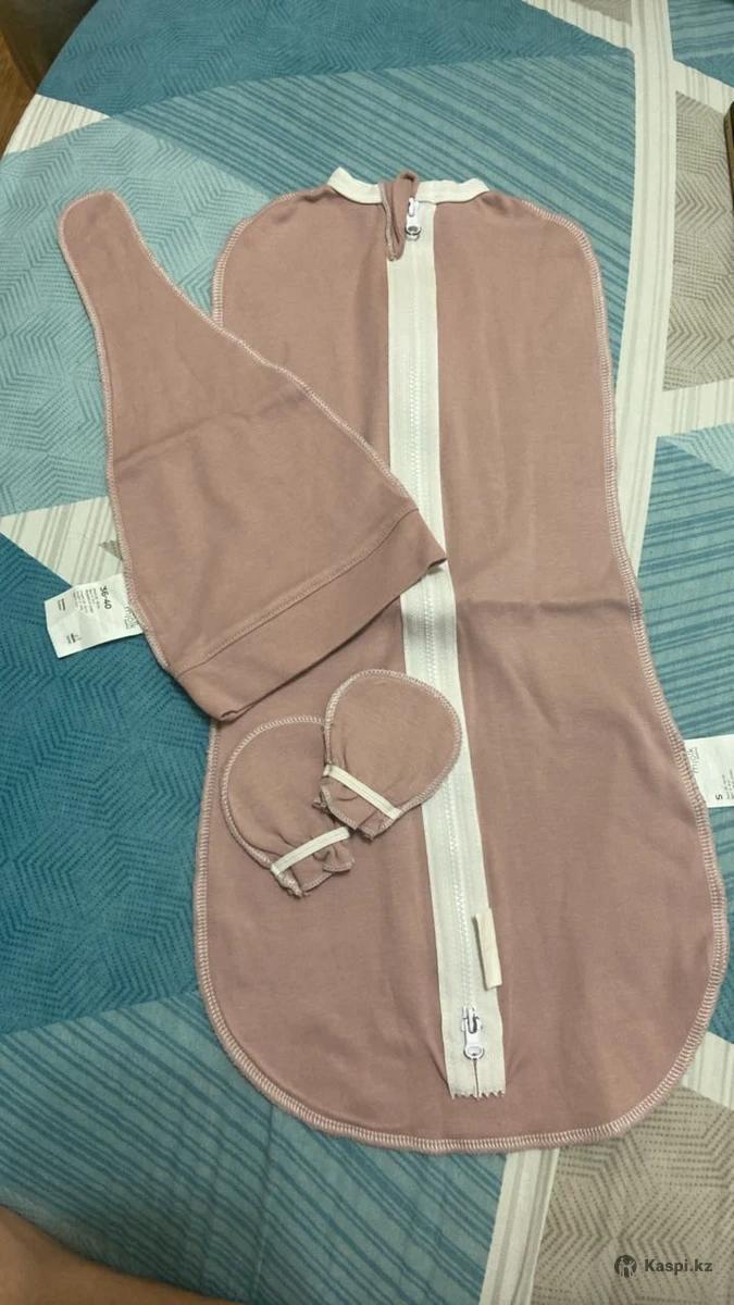 Кокон пеленка новая, не разу не использовали. В наборе шапочка, варежки и сам кокон. От 0-3 месяцев на рост 50-62