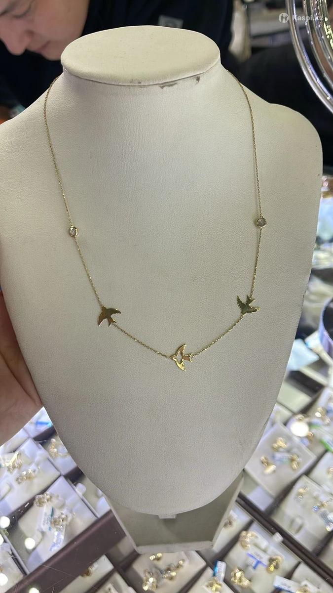 Новое колье 3-х мотивные Ласточки! Желтое золото 585 пробы! Италия! Шикарно смотрится на шее! Вживую красивее чем на фото! Вес 2,13 гр! Длина 45 см! Идеально подойдут для ваших Дам! Для себя любимой! Торга нету! Не писать и не звонит по поводу торга и т.д! Цена за изделия!