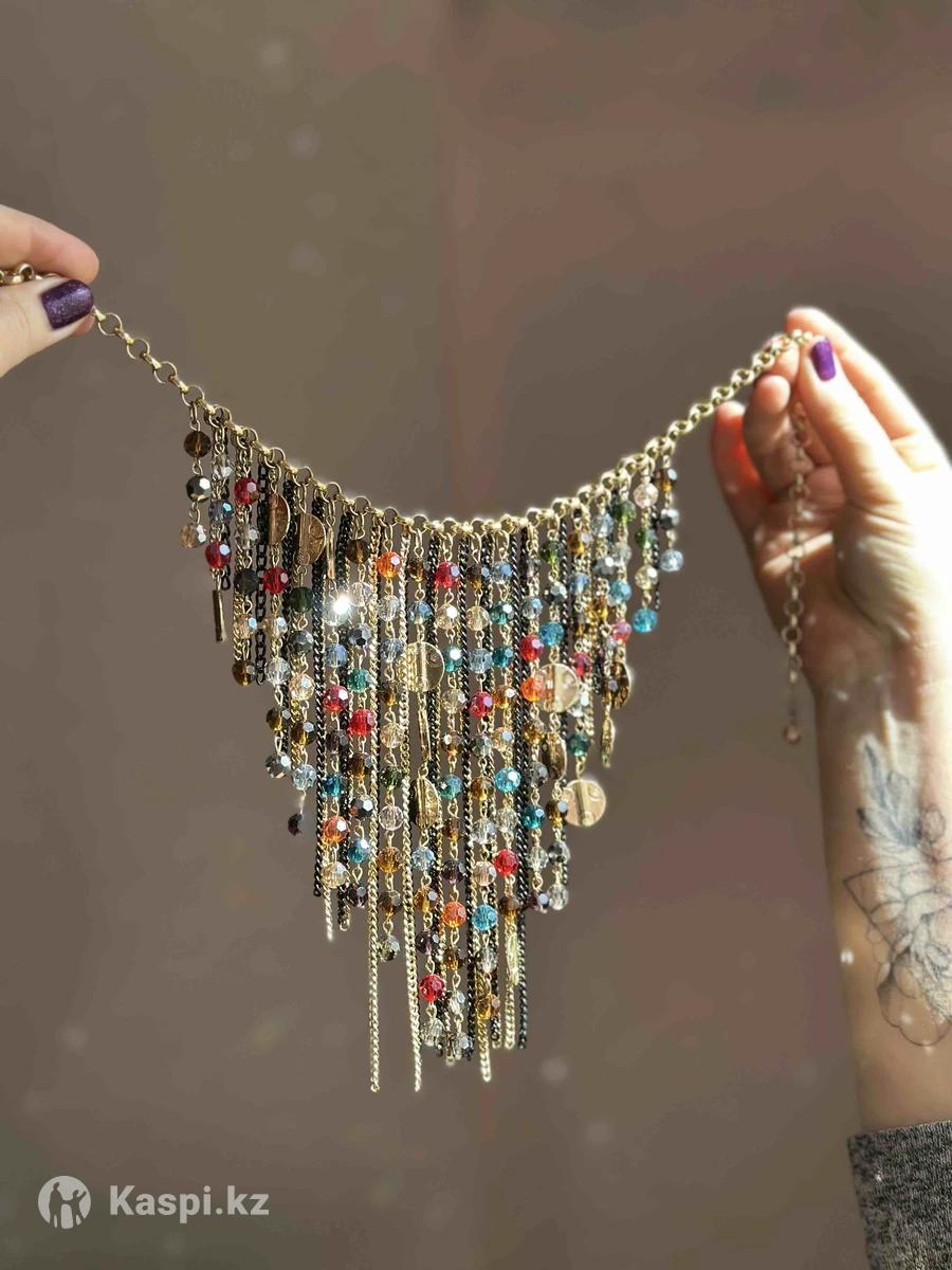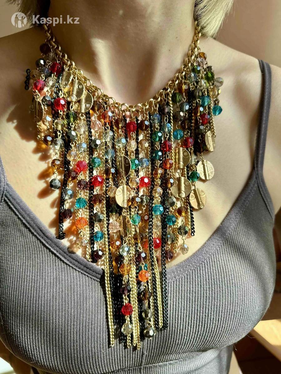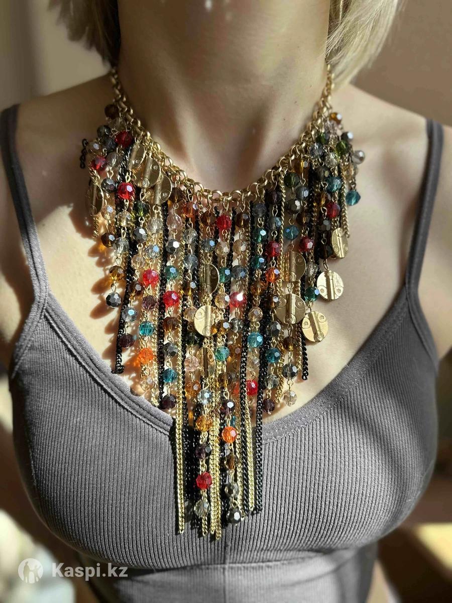 Эффектное колье в стиле бохо подойдет для создания ярких образов. Длина 55 см.