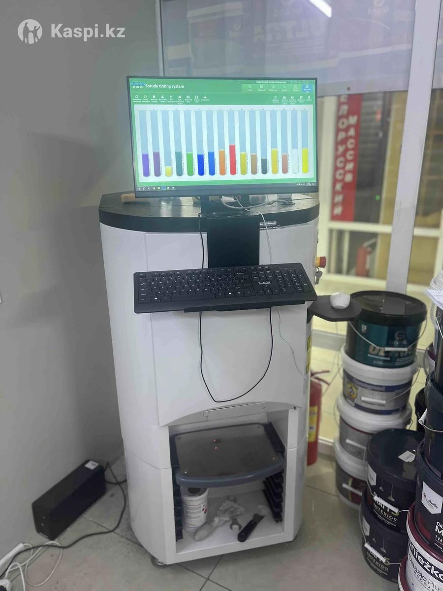 Колеровочный аппарат для красок Продается колеровочный аппарат для красок. Куплен за 2 500 000 тг, использовался 4 месяца. Полностью настроен, готов к работе. Состояние отличное, работает без проблем. Проверка на месте, торг возможен. Можно в кредит через каспи. За наличку скидка будет