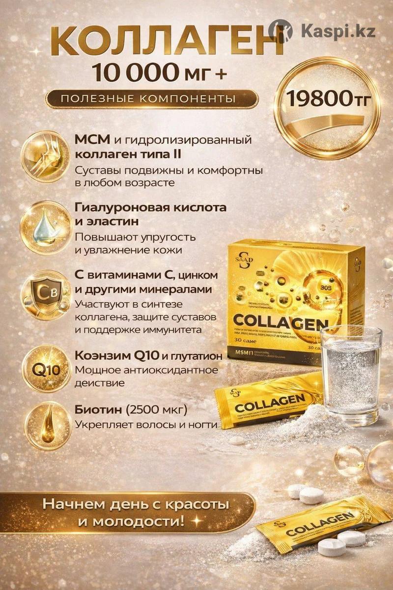 MAGNESIUM + B6 — БАД к пище с магнием, витамином B6 и пробиотиком - 7950 тенге Комплекс на основе гидролизованных коллагеновых пептидов типов I, II и III с гиалуроновой кислотой, эластином, MSM и витаминами - 19 800 тенге Цинк в форме пиколината с высокой биодоступностью. Способствует поддержанию иммунной системы, здоровья кожи, волос и ногтей, участвует в процессах регенерации тканей и антиоксидантной защите организма. - 9 850 тенге