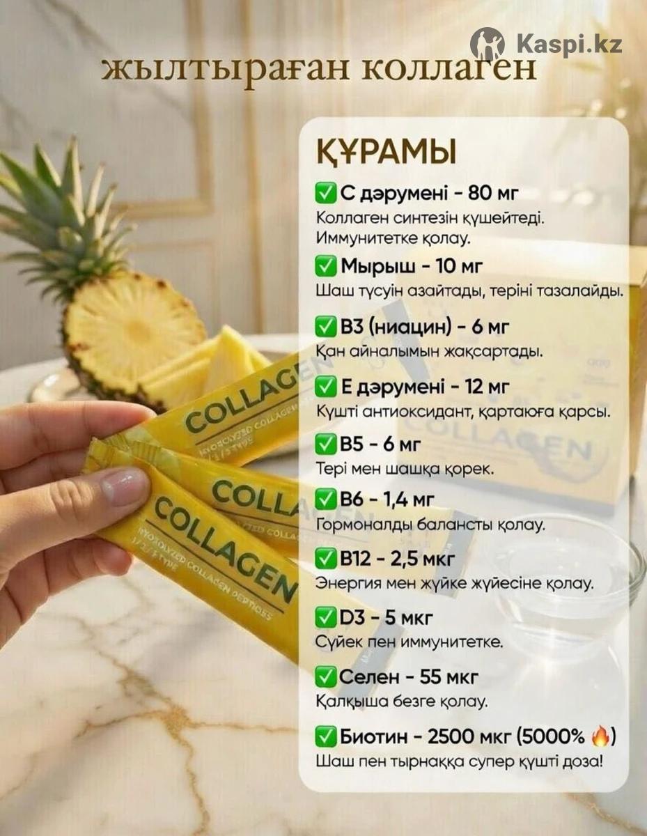 Комплекс на основе гидролизованных коллагеновых пептидов типов I, II и III с гиалуроновой кислотой, эластином, MSM и витаминами. Формула направлена на поддержку суставов, костей, связок, кожи, волос и ногтей