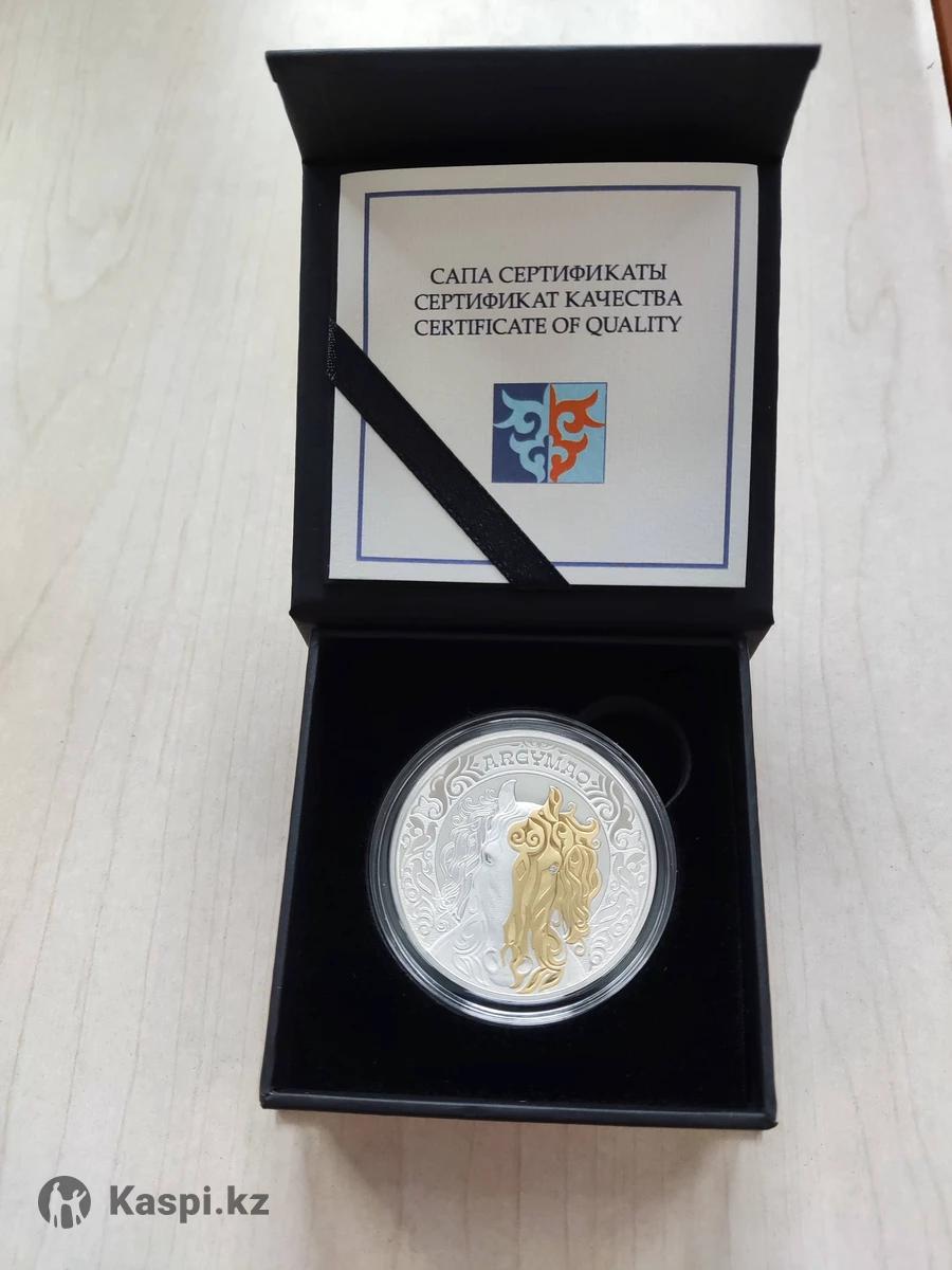 Коллекционная монета из серебра ARǴYMAQ. Серия монет «Культовые животные - тотемы кочевников» посвящена тотемным животным и раскрывает представление тюркоязычных народов об окружающем мире и связи с ним. Монета является заключительной в данной серии! Монета символизирует священного аргамака – одно из главных животных в тюркской культуре, олицетворяющее единство человека и природы. Ее дизайн основан на сочетании натуралистического и трафаретного изображения животного, выполненного в «сакском стиле». Лошади символизируют силу, скорость, благородство и выносливость. Одна часть представлена в виде животного, другая - в виде позолоченной маски с элементом мистицизма. Для этого впервые была применена технология вогнутой полусферы, которая позволила добавить рельефности изображению и придала некий эффект «выхода» животного из монеты. Особой изюминкой монет стали бриллиантовые вставки, инкрустированные в виде глаз. Монеты изготовлены из серебра 925 пробы, массой 31,1 грамма, диаметром 38,61 мм, качеством изготовления proof. В идеальном состоянии! Новая! Изготовлена на Казахстанском монетном дворе. Монета идет в капсуле, футляре и с сертификатом качества. Подходит для оригинального и драгоценного подарка, который со временем будет только расти в стоимости!