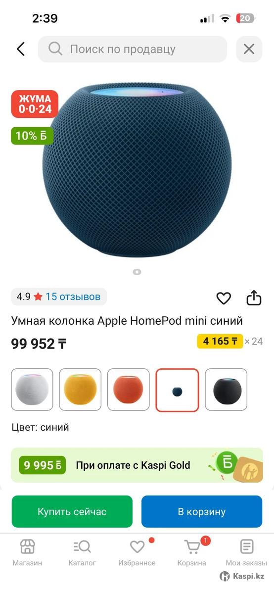 Продам HomePod mini от Apple Почти новая -состояние идеальное, звук классный. Полный комплект: коробка, кабель, все в наличии. Идеальна для музыки, Siri и умного дома.