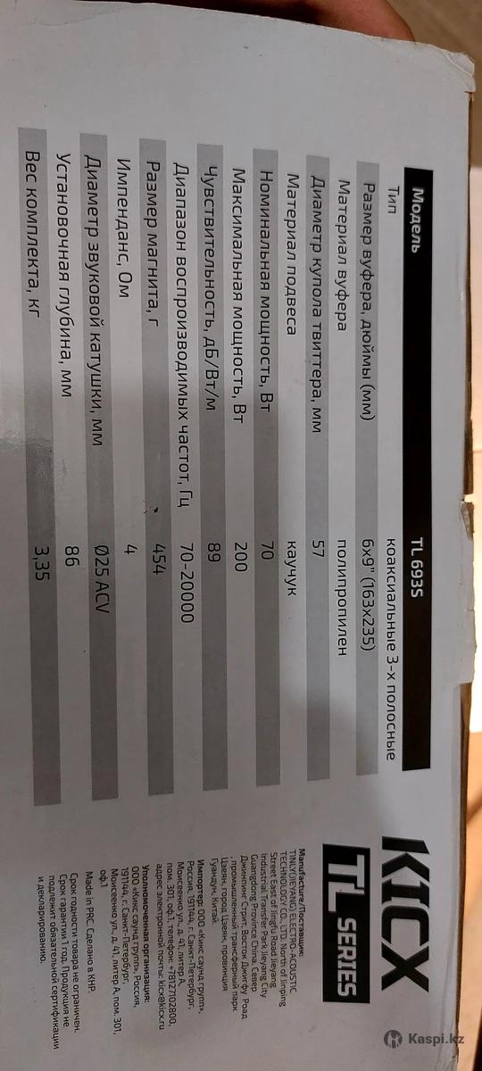 Kicx коаксиальная АС TL 693S Новые. Характеристики Типы динамиков СЧ-динамик, НЧ-динамик Общие характеристики Название модели TL 693S Тип коаксиальная АС Количество полос 3 Мощность (номинальная) 70.0 Вт Мощность (максимальная) 200.0 Вт Частота (минимальная) 70.0 Гц Частота (максимальная) 20000.0 Гц Сопротивление 4.0 Ом Чувствительность 89.0 дБ