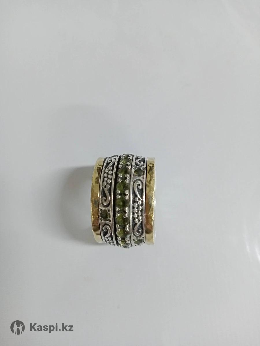 Кольцо. David 16 размер .изготовлено из серебра 925 пробы с золотой пластиной и хризолитом