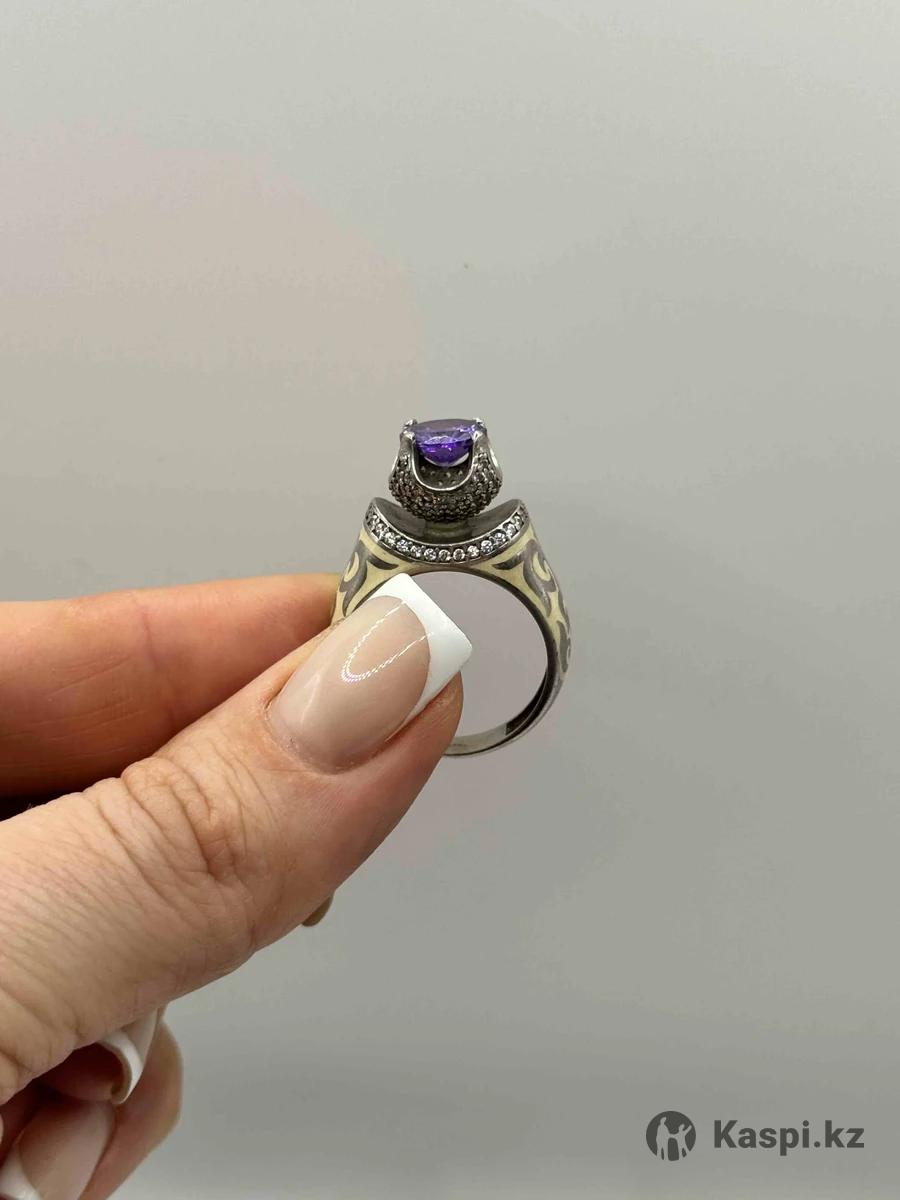 Кольцо в национальном стиле с аметистом бренда Balausa. Размер 18. Можно в рассрочку или Kaspi Red