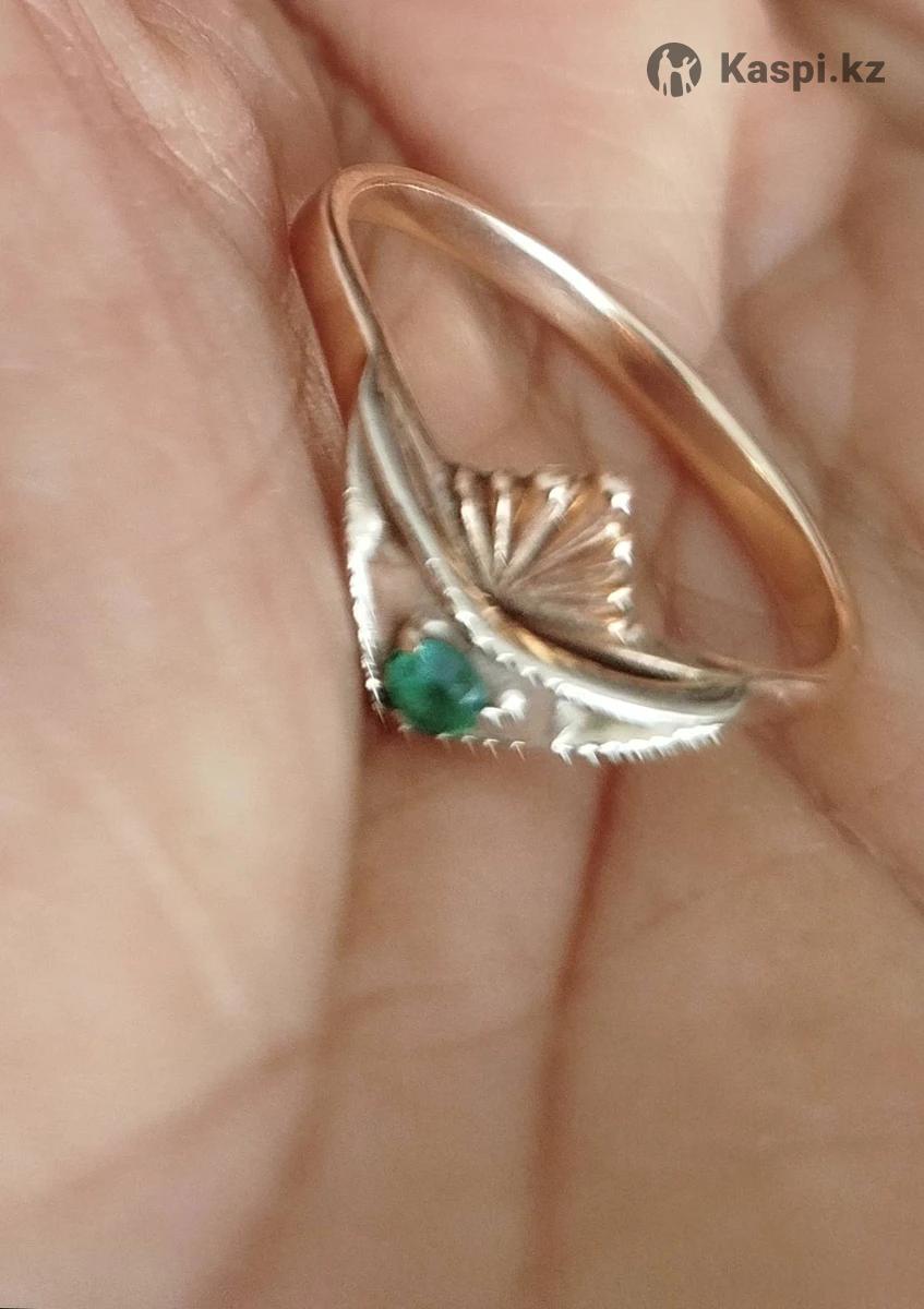 Коктейльное изящное кольцо из золота,вставка изумруд. 18 размер. 585 проба, Российский ювелирный завод.