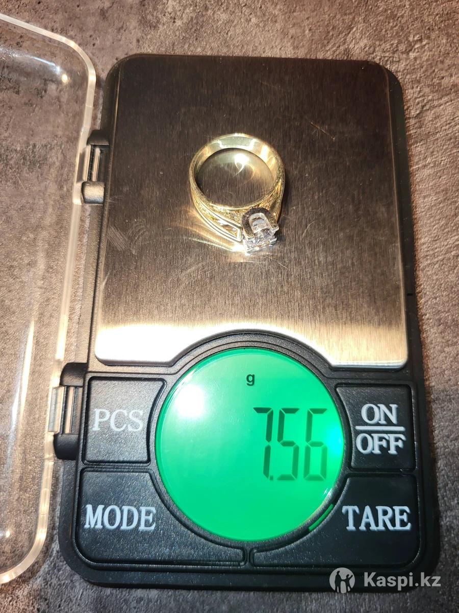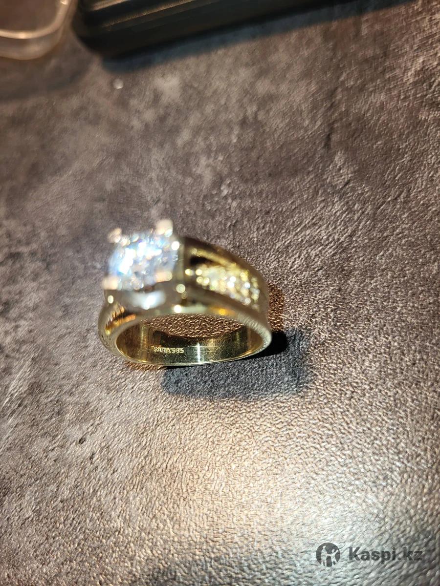 Кольцо с большим фианитом и мелкими камнями- бриллиантами, всего 20 штук. Кольцо 18 размера из желтого золота итальянская фирма SARA. В отличном состоянии.