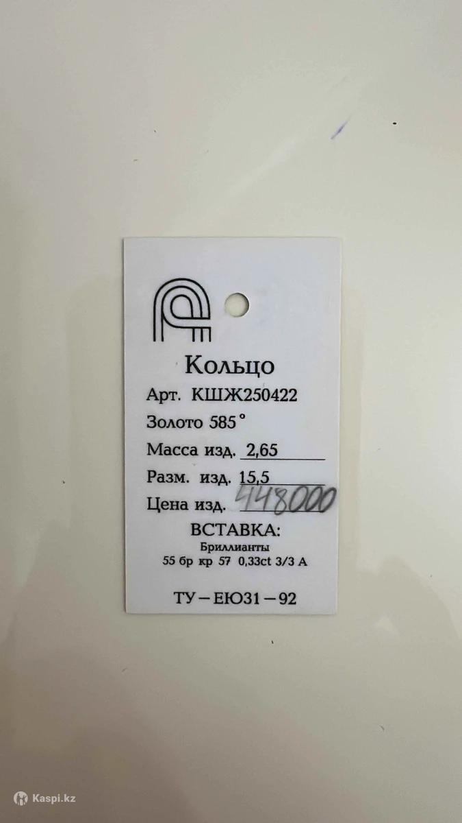 золото 585 размер 15,5 вес 2,65г Бриллианты 0,33ct
