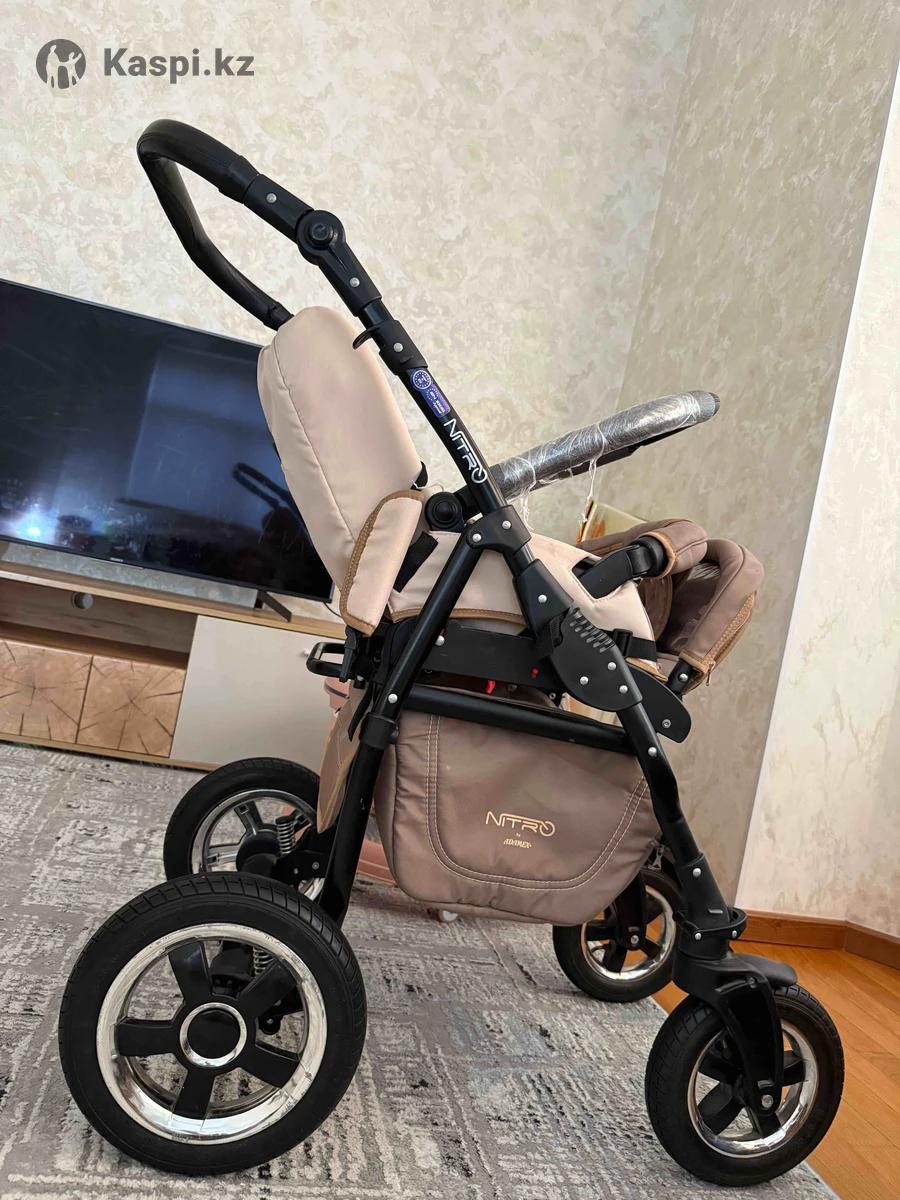 Коляска от хорошего брэнда известного Adamex Nitro 3 в 1. В комплекте: прогулочный блок люлька автокресло вместительная корзина для покупок, дождевик теплый конверт-фартук на ноги с высокой ветрозащитной стоечкой Размеры: В разложенном виде - 94 Х 59 Х 124 см сложенном виде - 59 Х 30 Х 98 см Сидение - 25 Х 34 Х 40 см Вес коляски составляет 16 кг Колесики чистые, в отличном состояний так как гуляем по дому - по комнатам.