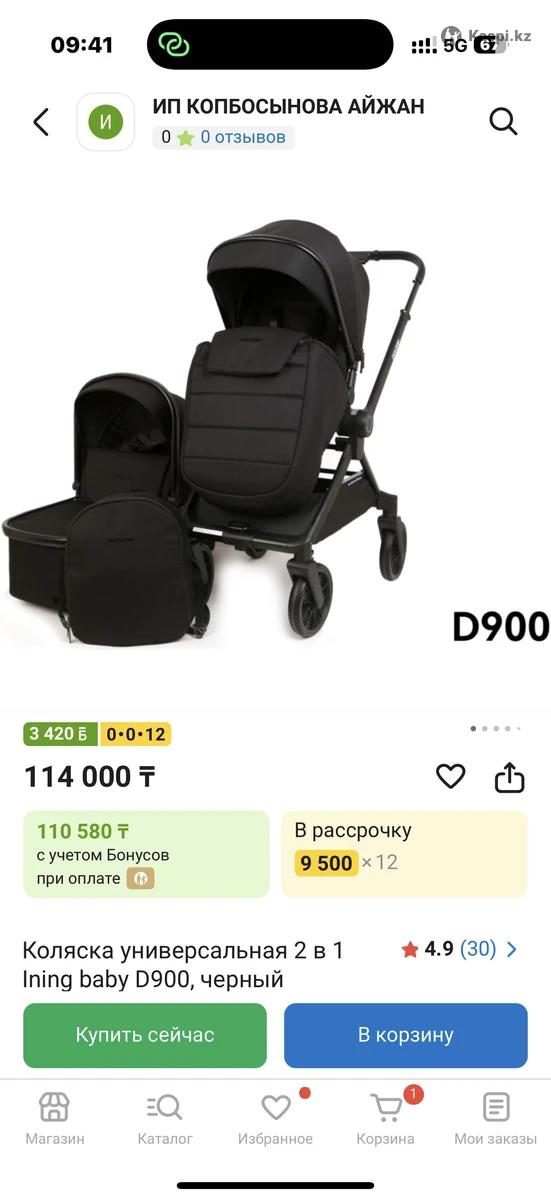 Коляска 2 в 1 Ining Baby D900 70тыс В отличном состоянии, пользовались аккуратно. Стильная и удобная коляска чёрного цвета. Лёгкая в управлении, колёса мягко едут. Полный комплект: • Люлька (для новорождённого) • Прогулочный блок • Сумка • Чехол на ножки г Алматы