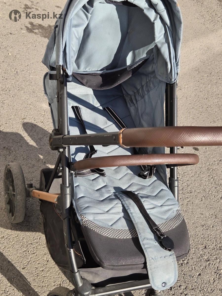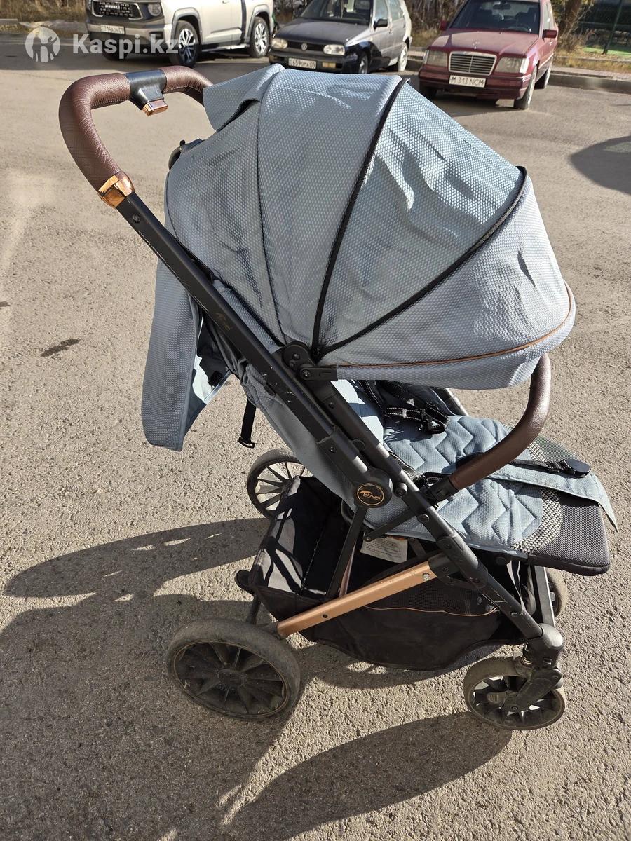 Детская коляска Коляска складывается для легкой транспортировки, ручка перекидывается вперед. Положение спинки меняется от 180° до 90° , капюшон раскрывается почти до самого низа, есть зимний карман для ножек.