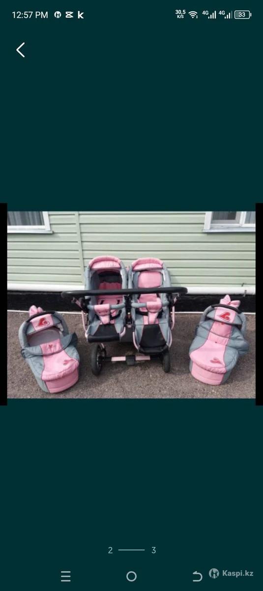 Коляска для двойни,(розовая) в отличном состоянии,ездит очень хорошо, в комплекте рюкзаки ,дождевик, москитная сетка, пользавились аккуратно, все чистенько. Можно приехать посмотреть.