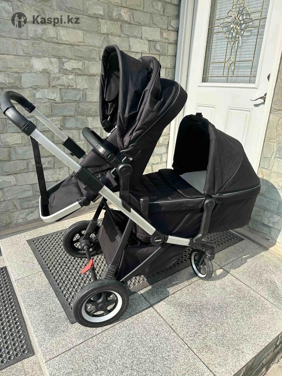 Универсальная коляска 2 в 1, отлично подходит и к холодному периоду и к жаре за счет материалов и возможностей трансформации. Оригинал!!! Можно использовать два блока одновременно, идеально для погодок! Можно докупить еще одно сиденье, когда младенец вырастет из люльки и установить два сидения. Просторная комфортная люлька с вентилируемым матрасом. Вентилируемый капюшон с выдвижным солнцезащитным козырьком. Сиденье можно установить лицом к родителю и наоборот, наклоняется и фиксируется в трех положениях. Можно устанавливать на шасси автолюльку (в комплекте нет, переходники нужно будет купить под модель вашей автолюльки) Амортизирующая подвеска 4 колес обеспечивает плавность езды. Выбирали между cybex и stokke, Thule значительно выигрывает по амортизации, очень комфортна по бездорожью! Просто и компактно складывается с помощью автоматического фиксатора Регулируемая высота ручки под любой рост.