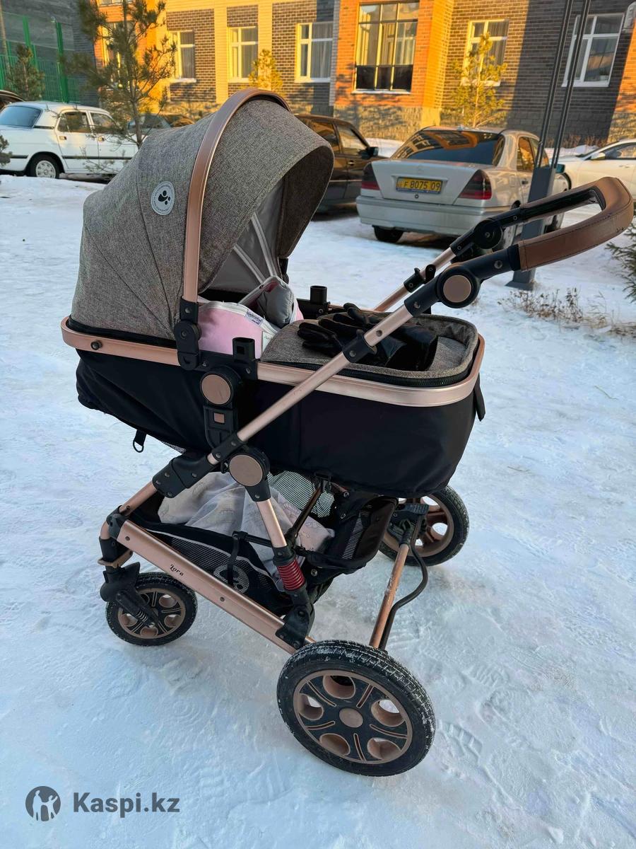 Коляска Lorelli Lora трансформер. Всесезонная, удобная и маневренная, отличные амортизаторы. Бампер и накидку на ножки можно полностью отстегнуть. Есть дополнительный козырёк, который также отстегивается. В комплекте есть корзина, сумка, подстаканник. В положении прогулки есть также 2 кармашка. На раме в некоторых местах есть царапинки, кожа на ручке чуток отошла. В целом на функциональность никак не влияет. Брали за 100.000 тг. Пользовались только зимой. Торг есть. Все остальные характеристики можете посмотреть в интернете. Продаём из-за того, что есть другая коляска.