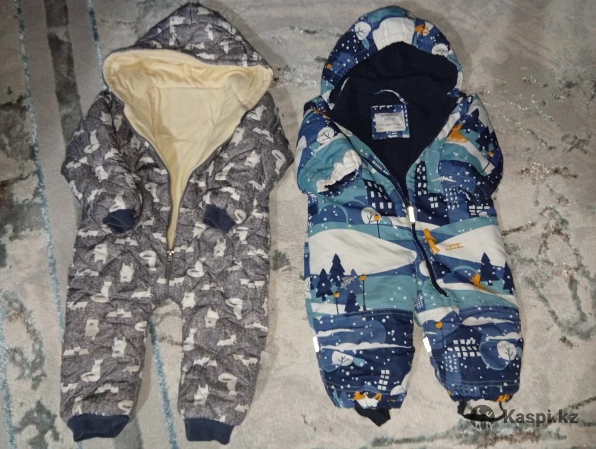 Продаю 2 комбинезончика зима Синий брала за 28.000 очень хорошо прослужил, размер 62-68. Серый размер 68-72 тепленький нежный. Отдам оба за 5000