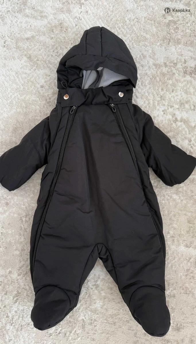 Комбез теплый. Удобное расположение замков. Шея дополнительно закрывается планкой на клепках. На 3-6 месяцев.