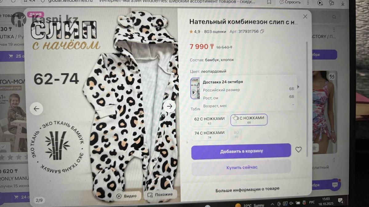 Слип, комбинезон, мягкий, с начесом, удобный, эко ткань бамбук, очень приятный. В отличном состоянии, носили один раз, размер 86, на годик-полтора