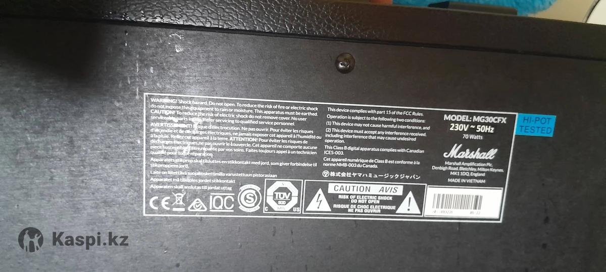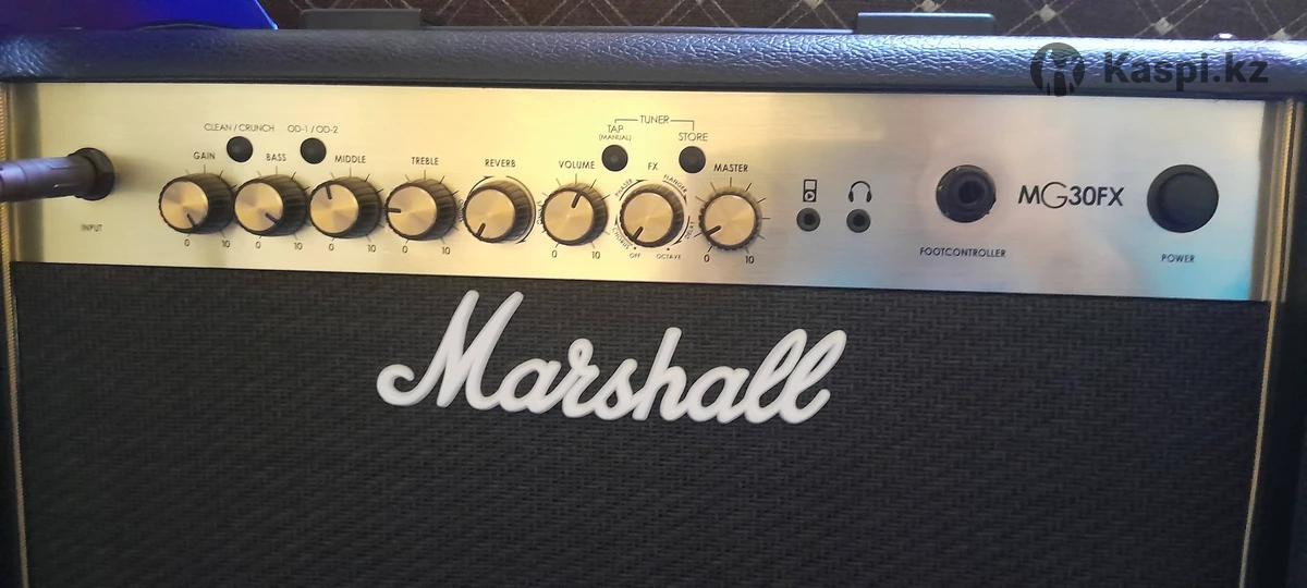 Комбоусилитель маршал. На 30 ватт. Есть эффекты: хорус, фазер, флангер, дилей, октавер и реаерб. Есть возможность сохранять пресеты, можно подключить футсвич. Есть выход на наушники и возможность подключить телефон как к колонке. Комбик очень подойдет для маленького помещения и для дома в частности.