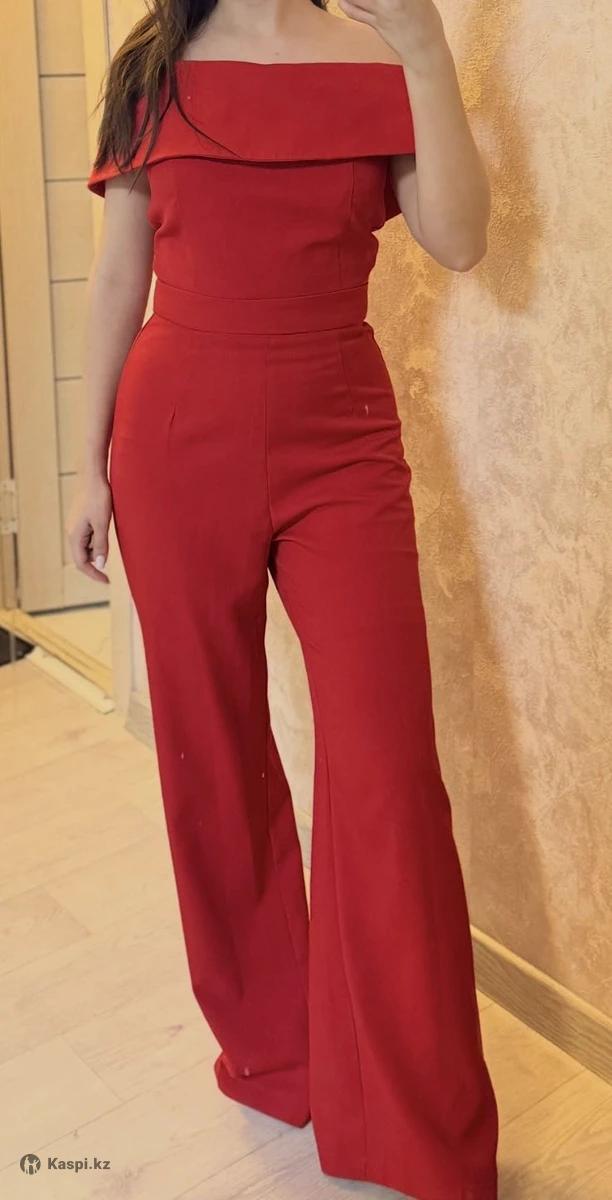 Комбинезон красного цвета с открытыми плечами Одевала 2-3 раза на вечер Сзади замок S-M размер Подойдёт на рост от 168 В хорошем состоянии можете спокойно одеть на мероприятие 7500 тг