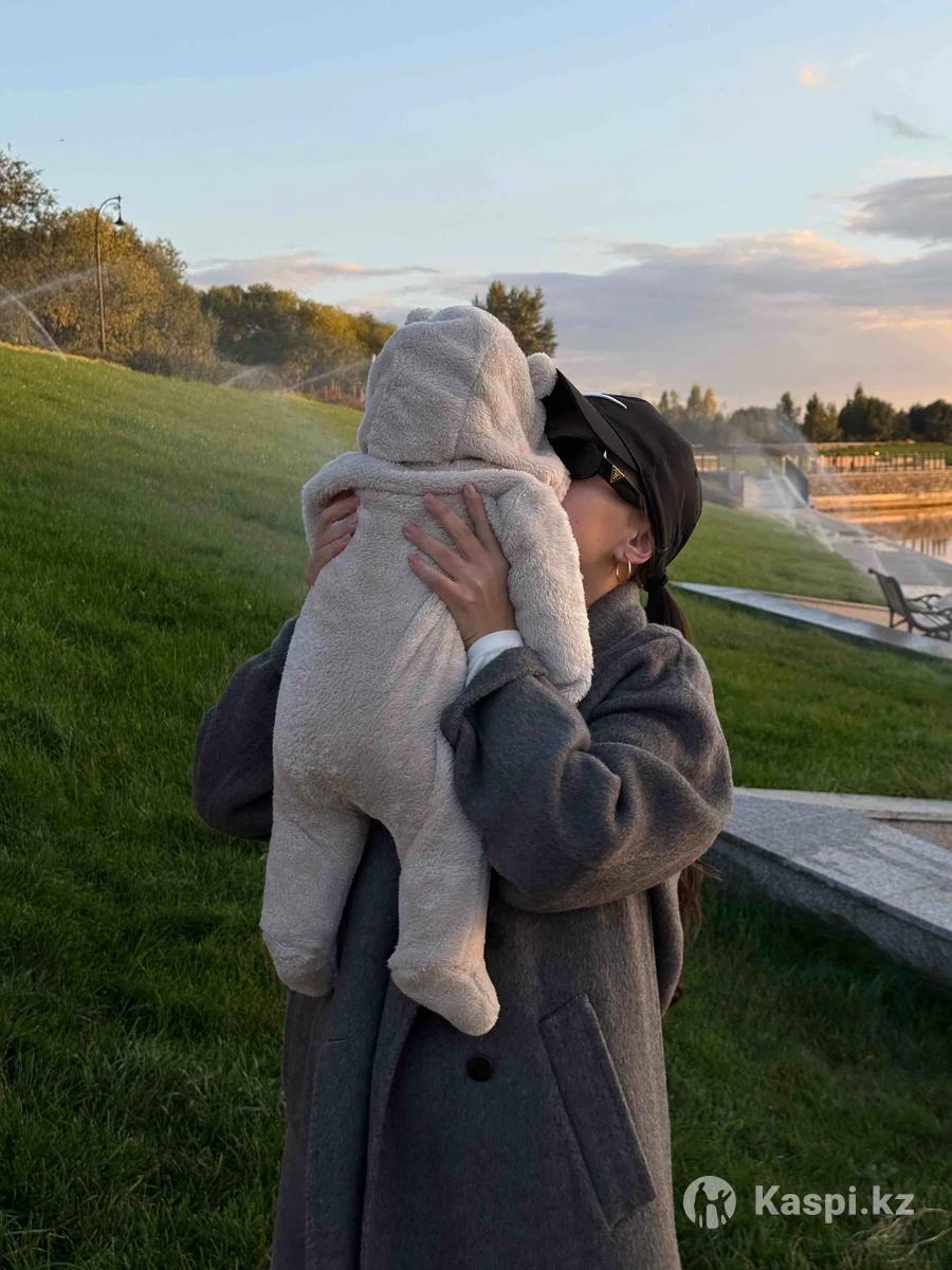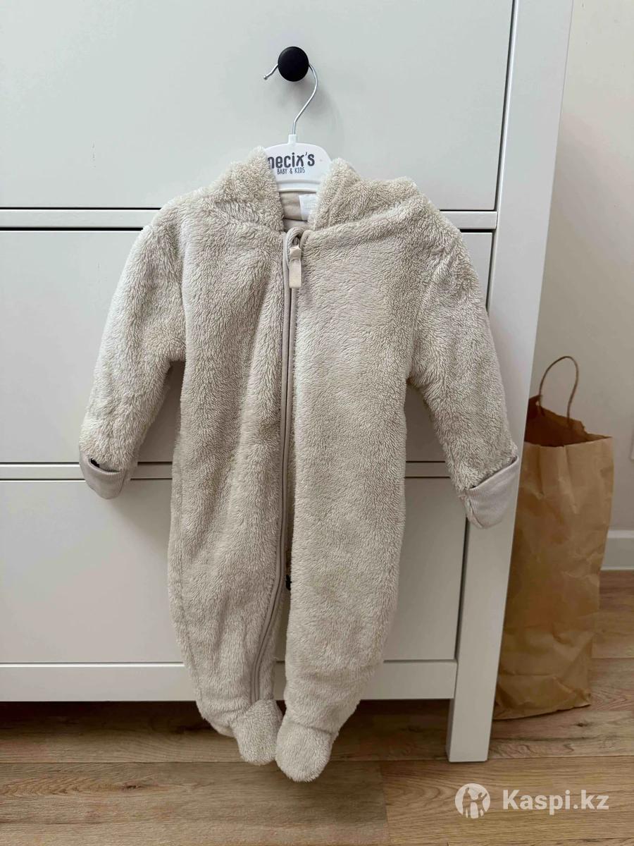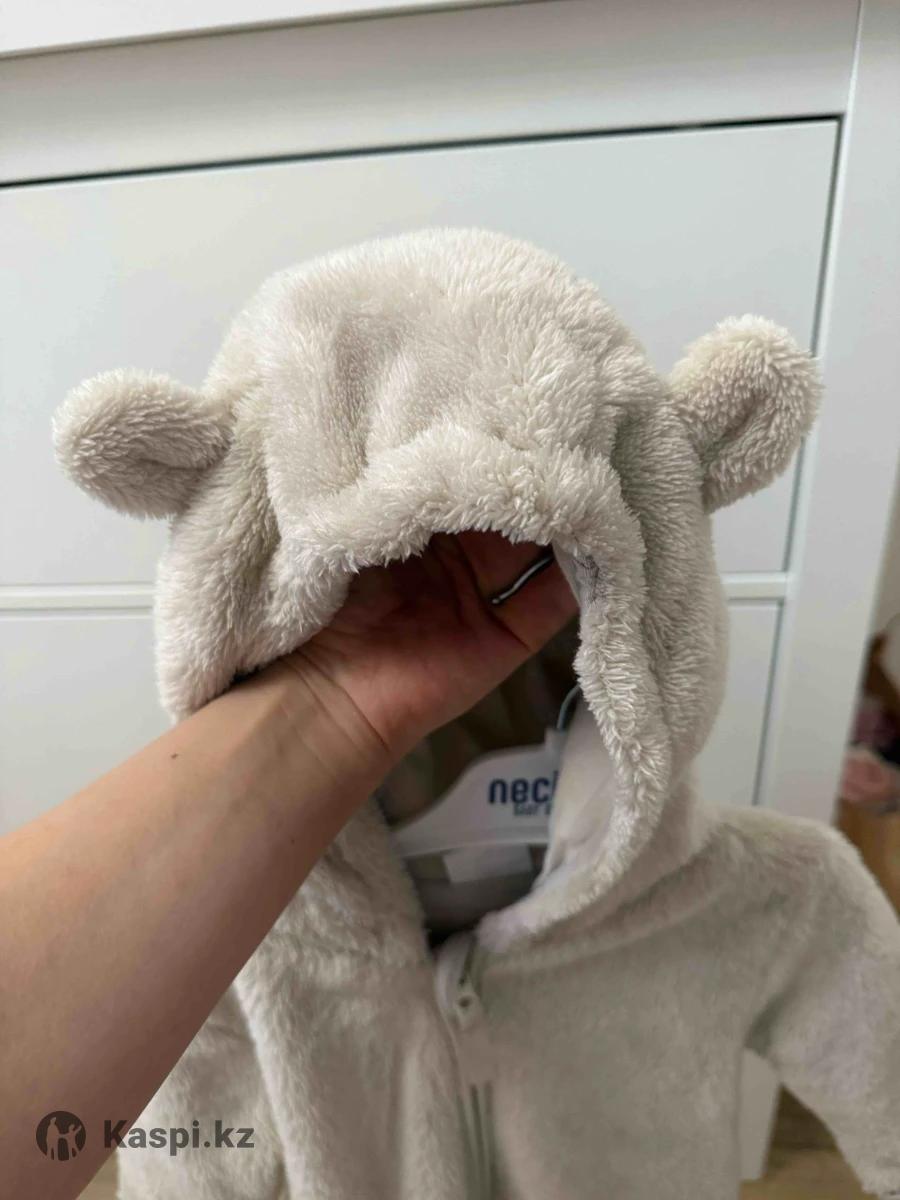 Демисезонный комбинезон 68 размер, бежевый, подклад хлопок, ножки закрыты, капюшон с ушками, состояние отличное