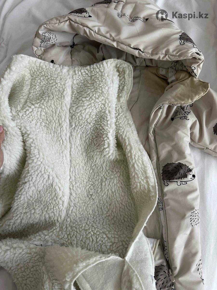 Комбинезон трансформер, размер 74-80. Вещь сразу на 3 сезона. Осень/зима/весна. Имеется теплый подклад, который можно отстегнуть и носить в более теплую погоду. Ручки закрываются, теплые пинетки или можно застегнуть ножки на замок. Состояние идеальное