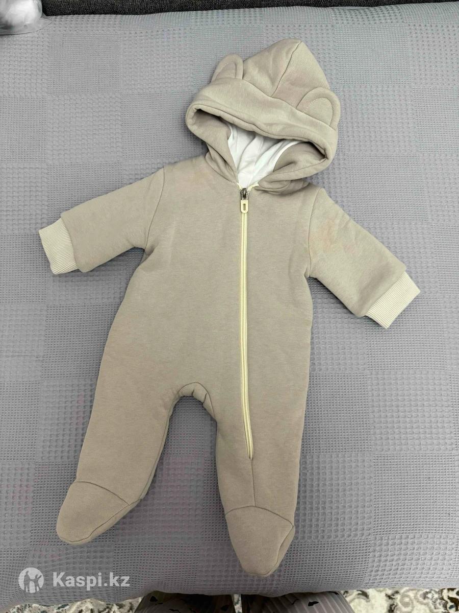 Теплый комбинезон пепельный цвет 56 размера. Шили на заказ для недоношенного ребенка, хлопок 100%