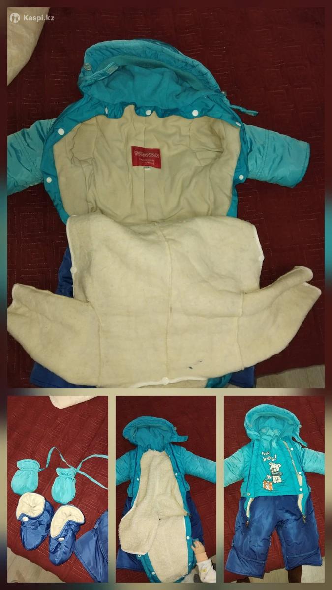 Комбинезон размер 78 см зима - весна там внутри утепленный на кнопках снимается варежки + носочки в отличном состоянии цена 3000тг майкудук