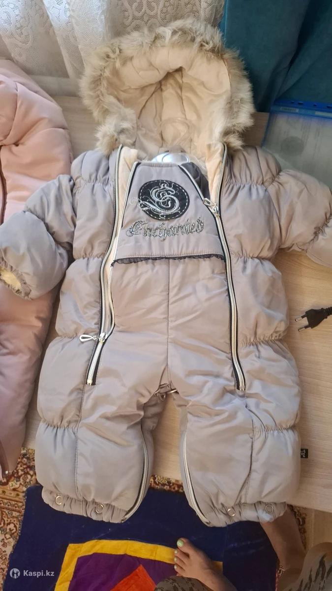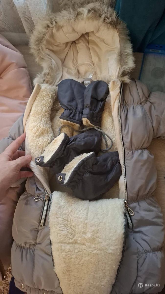 Тёплый зимний комбез трансформер, с капюшоном, с рукавичками с носочками, мех натуральный овчина, с рождения до 3-4х месяцев, отдам за 7.000 тг