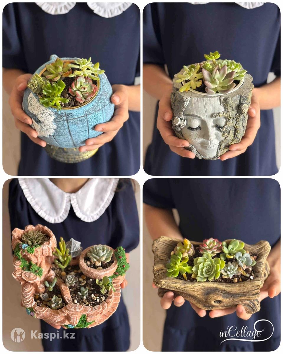 Интересная альтернатива букету для любого праздника. Долгое время дарит добрые эмоции и хорошее настроение. Фиттония Хлорофитум Каменная Роза Суккуленты Фикусы Аглаонемы Глоксиния Крассула и другие Адаптированные, посаженные в хороший грунт, не требуют специального ухода и пересадки Район парка Горького Цены от 4000 тенге Наличие уточняйте
