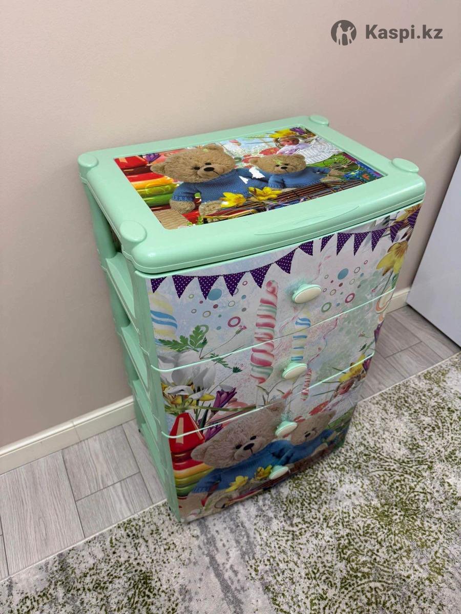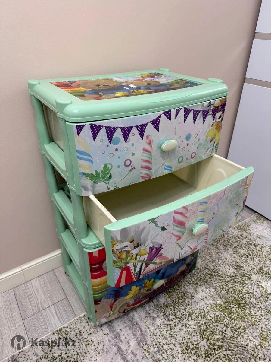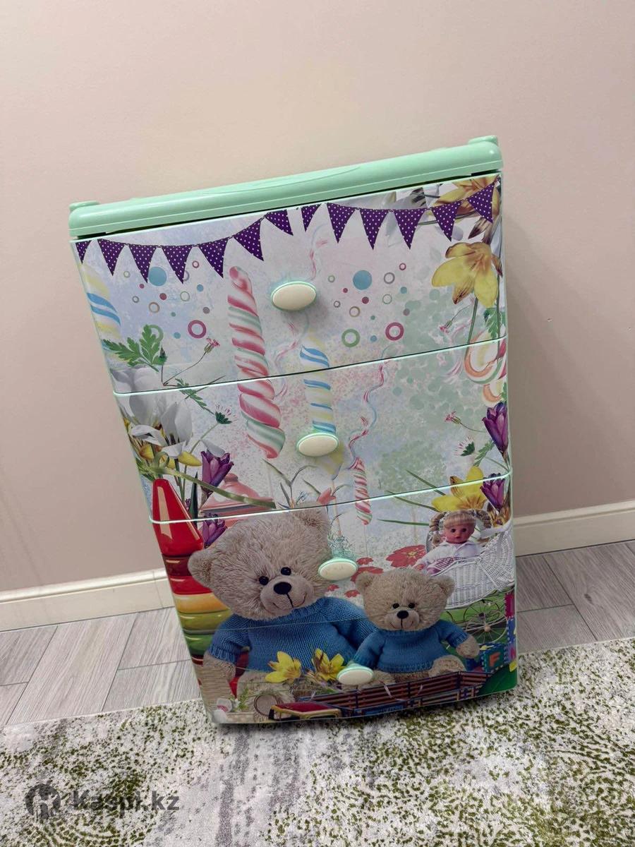 Материал: прочный пластик. Состояние: отличное, без повреждений. Удобный и вместительный, подходит для хранения детских вещей и игрушек. Легкий, легко перемещается.