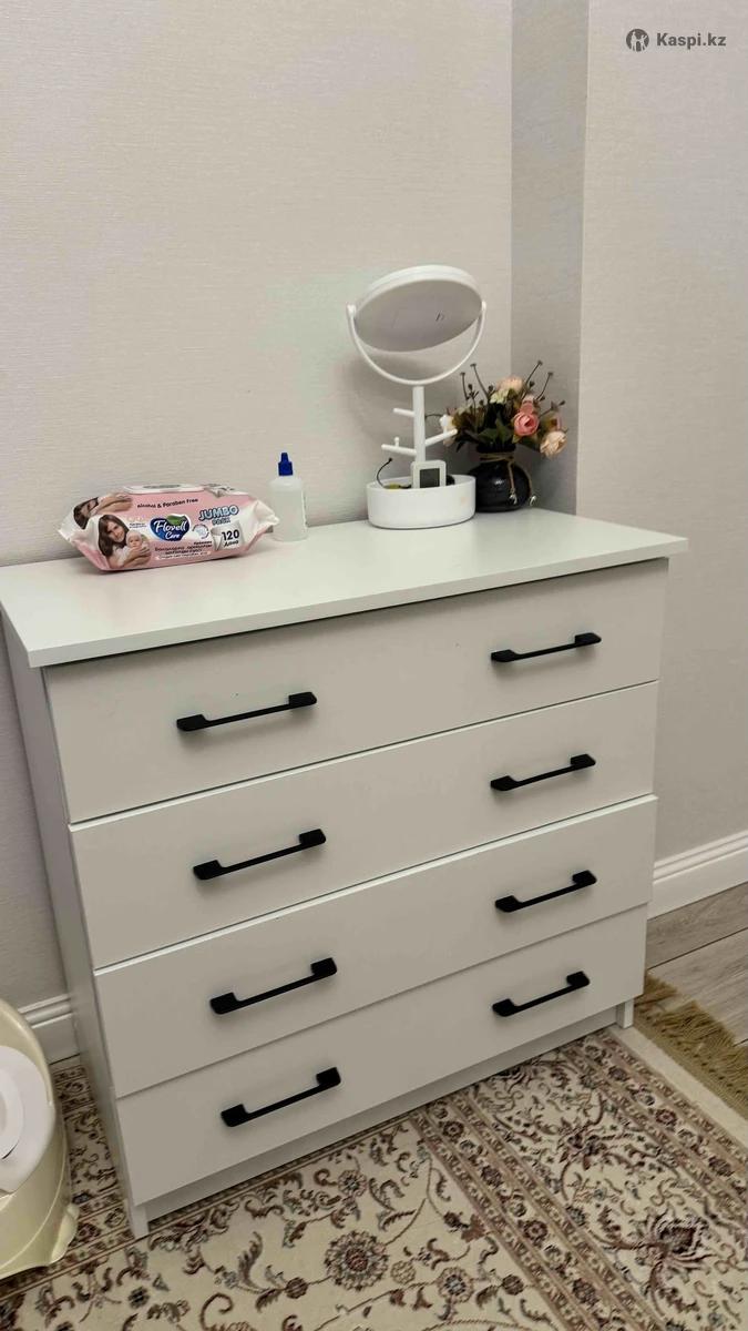 Комод Letta Miro, белый Размер 75×39×72 см, ЛДСП, 4 ящика. Состояние хорошее, у второго ящика сломана задвижка (можно починить). Покупали за 27 000 тг, цена 10 000 тг. Продается в собранном виде, самовывоз.