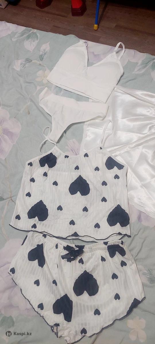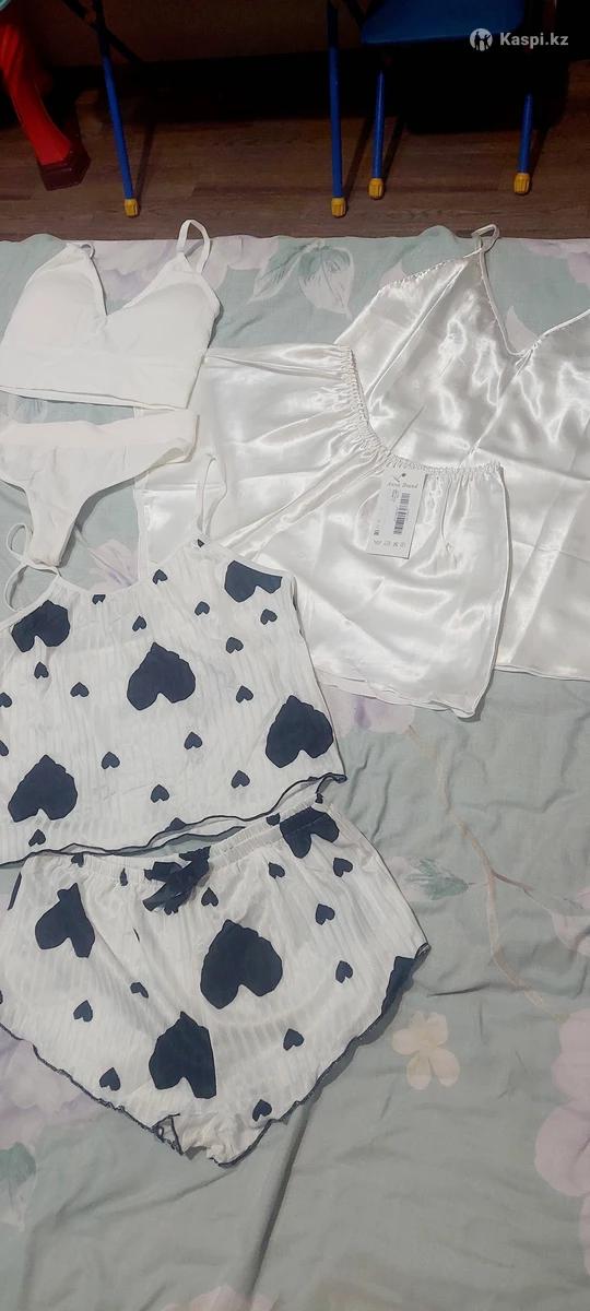 Продам новые комплекты, размер 44, как на фото, белый цвет, бра + шорты. Топ+шорты, бра+стринги. ! Нижнее белье возврату, обмену не подлежит! За 3 комплекта оптом 6000 тг. Самовывоз мкрн. Каратал. Цена 2500 тг. Отправка по яндекс такси по тарифу.