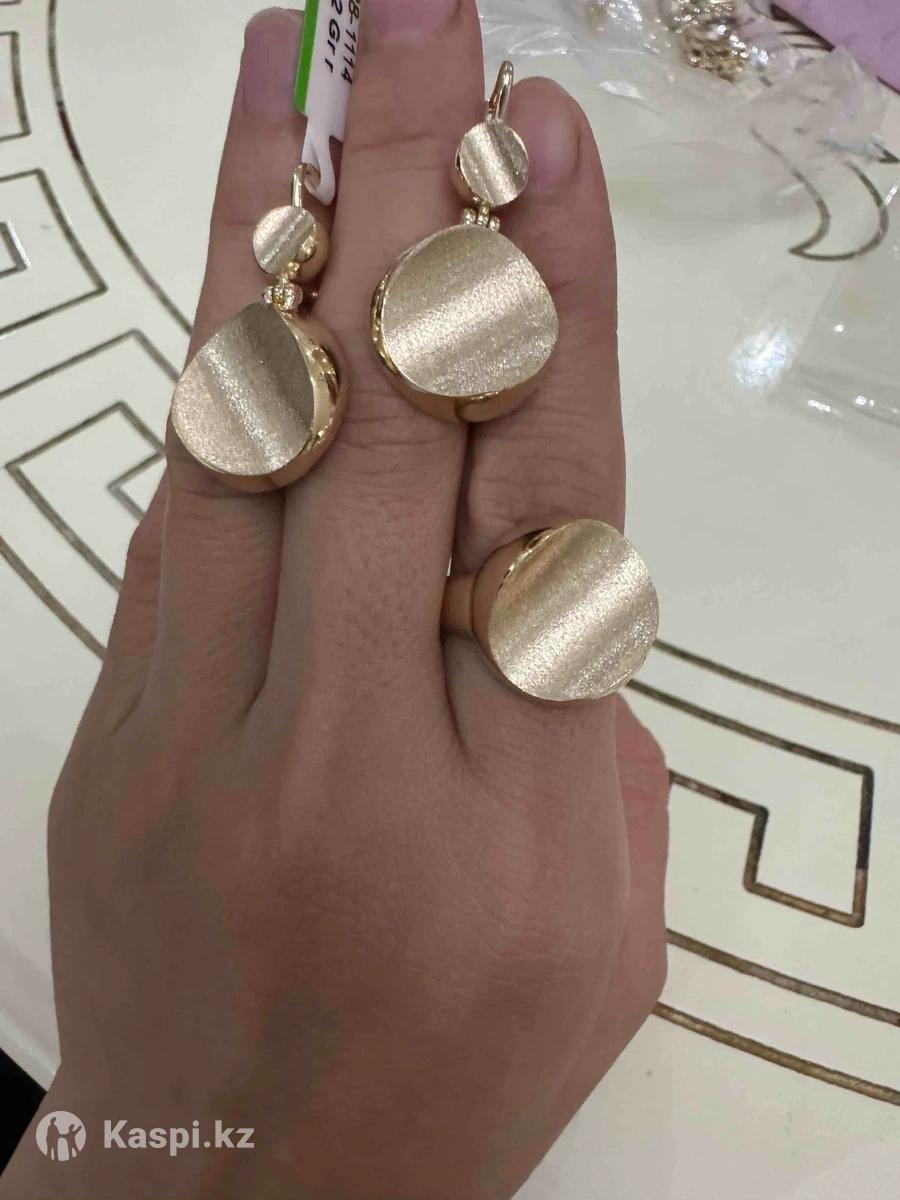 Комплект серьги 7.22, кольцо 4.1 гр. Желтое золото 585