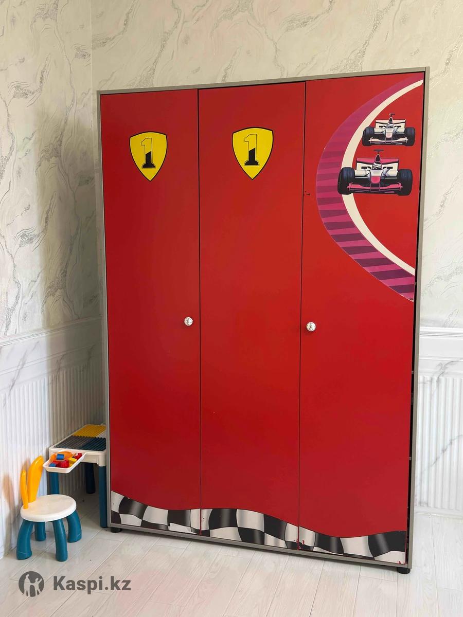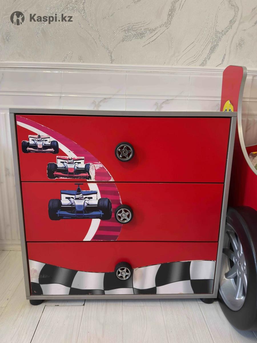 Продается комплект детской мебели, стоимость 70 000тг. Все целое, вместительный шкаф, размер спального места 90/190 реечное основание, фары горят можно использовать как ночник.