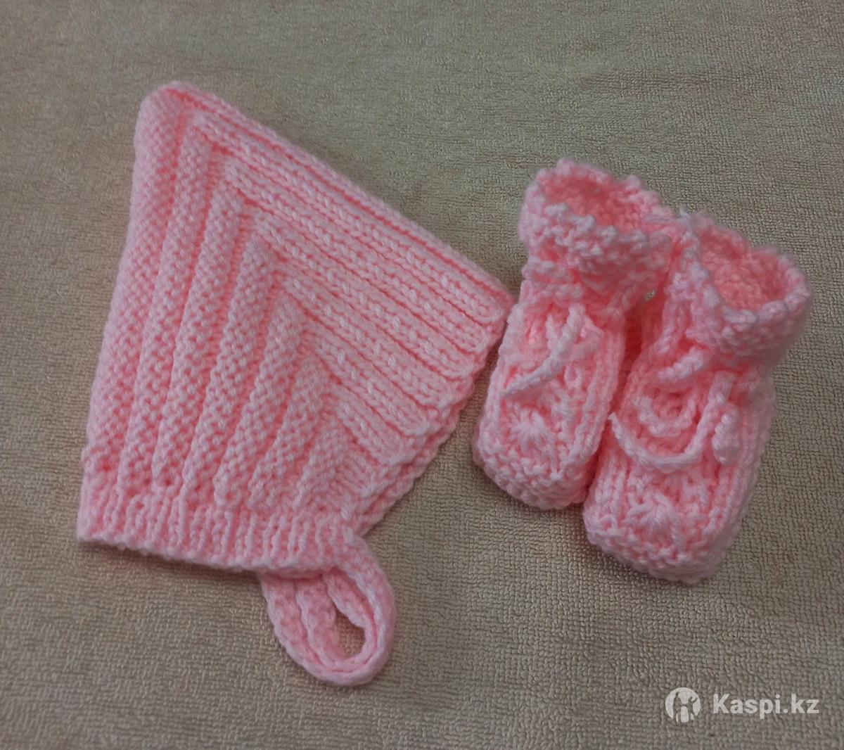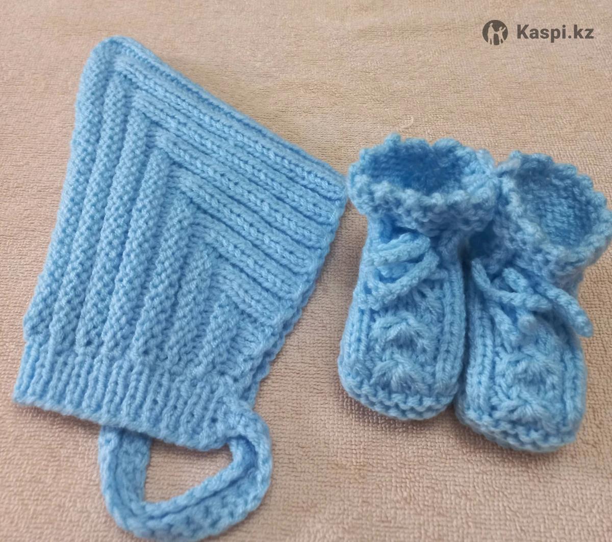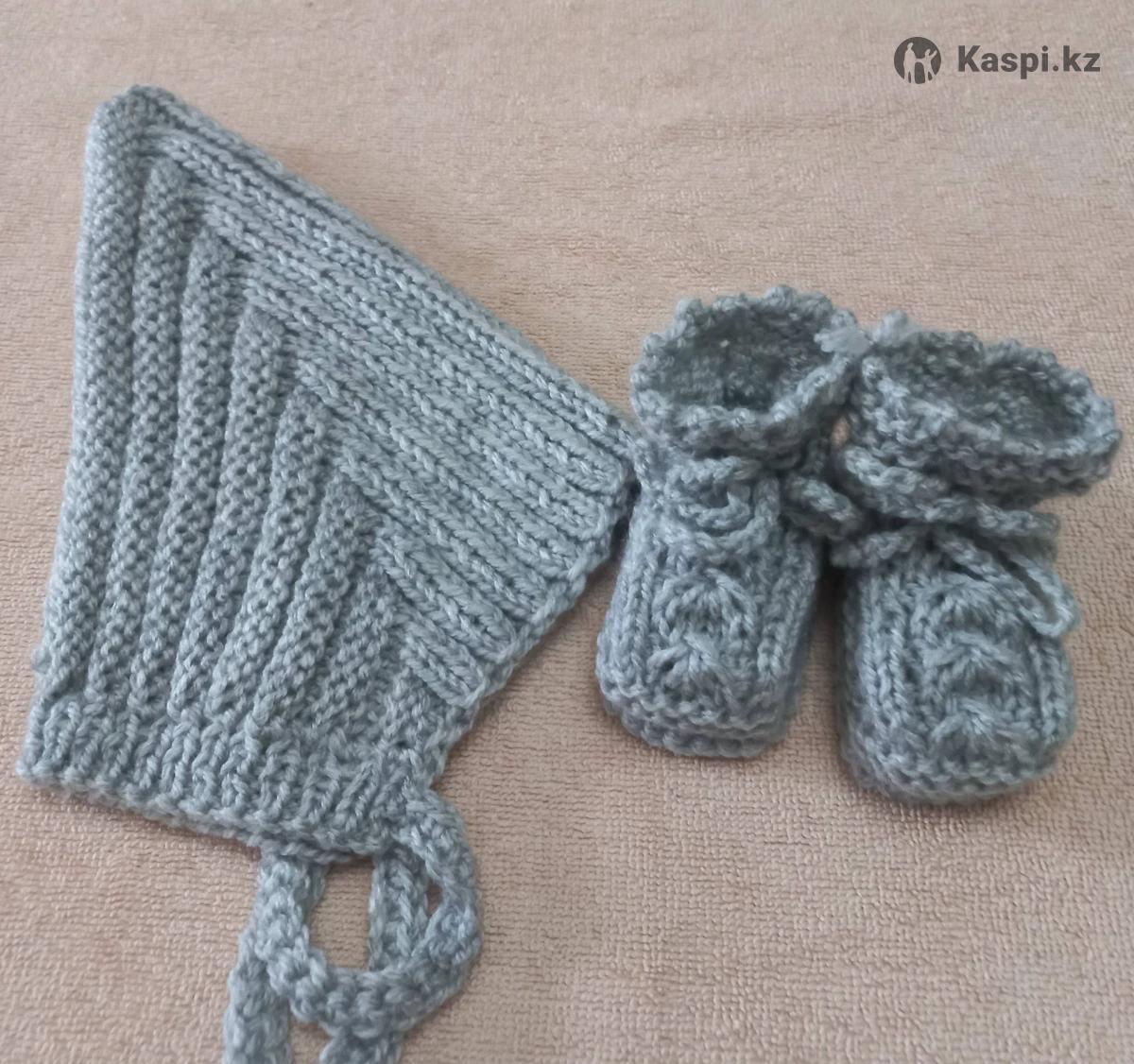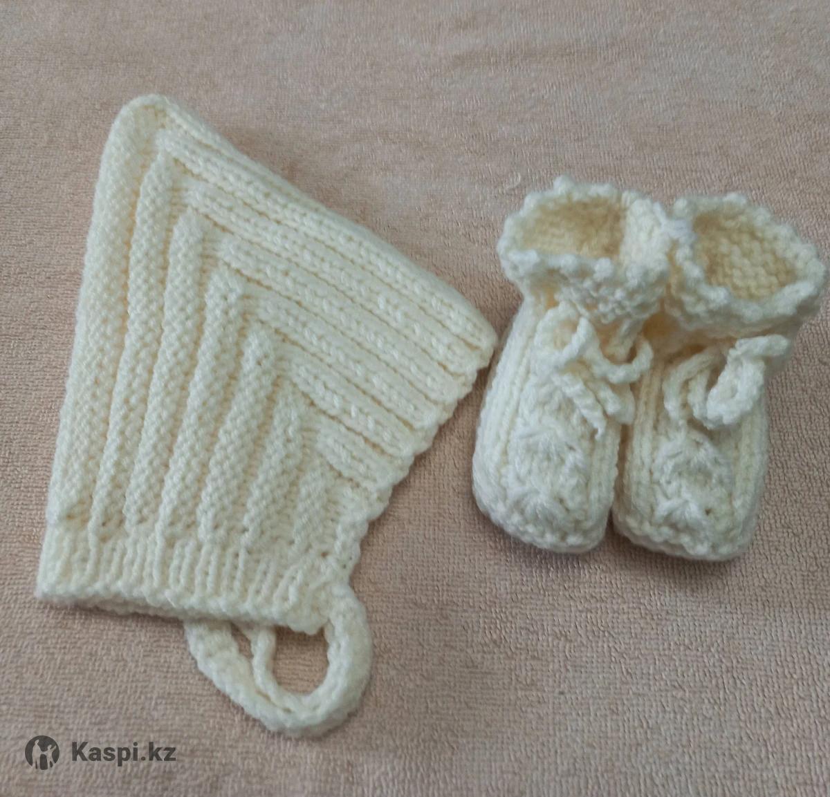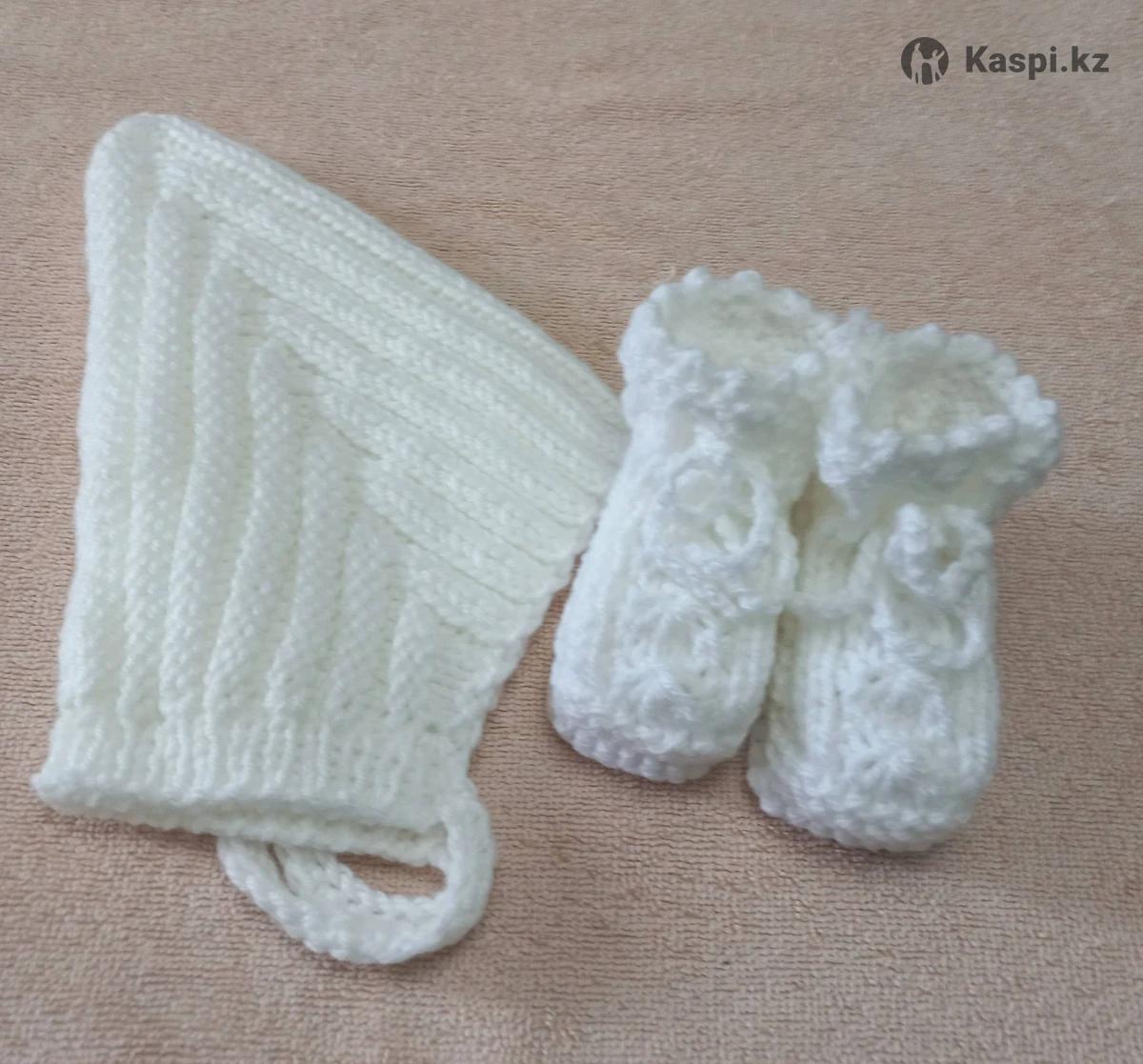 Комплект для новорожденного. Шапочка гномик и пинетки. Ручная работа, пряжа детская гипоаллергенная. Размер 0-3 мес.