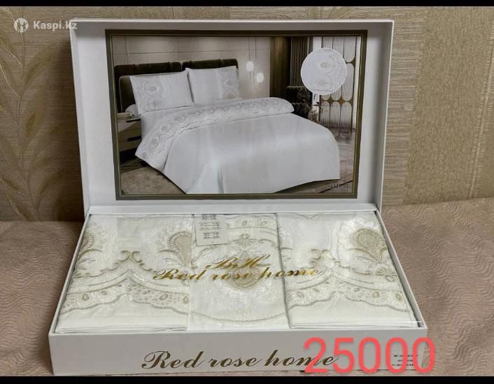 Подарочный набор Состав: 100% хлопок, кружево. Пододеяльник: 200×230 Простынь: 230×2500 Наволочки: 50×70 Цена: 25000 тенге.