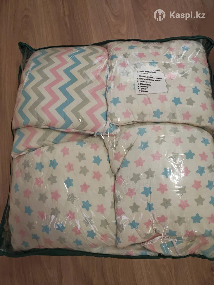 Продам комплект постельного белья на кроватку трансформер цвет универсальный в составе: Борт Простынка круглая Простынка овальная Покрывальце на круглую Покрывальце на вольную Одеяло 110140 Пододеяльник Подушка 4060 Наволочка карман