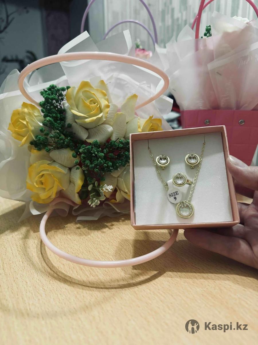 Очень красивые комплекты, бижутерия, цепь,браслеты ,есть много вариантов в наличии(на фото это часть бижутерии, на можете написать ,могу отправить фото то что в наличии).Город Шымкент, доставка курьером в любое время .Цены разные от 3000тг до 14000тг