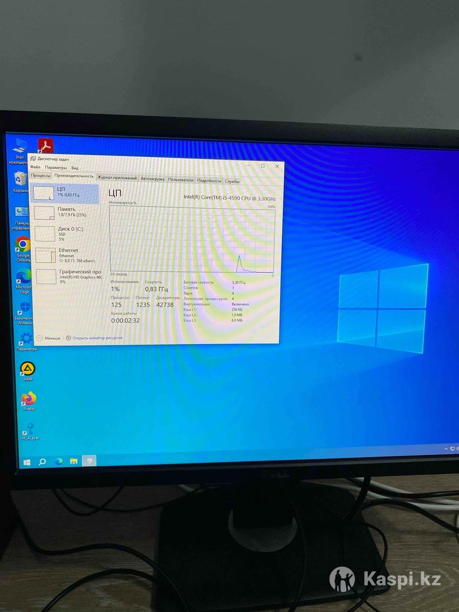 Продаю полностью готовый к использованию компьютер. Установлена Windows 10, все настроено, можно включать и работать. Подходит для офиса, учебы, дистанционной работы, интернета, фильмов и программ 1С. Характеристики: Процессор: Intel Core i5-4590 (4 ядра, до 3.7 ГГц) Оперативная память: 8 ГБ DDR3 Накопитель: SSD 120 ГБ Видеоядро: Intel HD Graphics Операционная система: Windows 10 Pro, активирована Работает тихо и стабильно, загружается быстро, состояние отличное. Можно подключить и сразу использовать.
