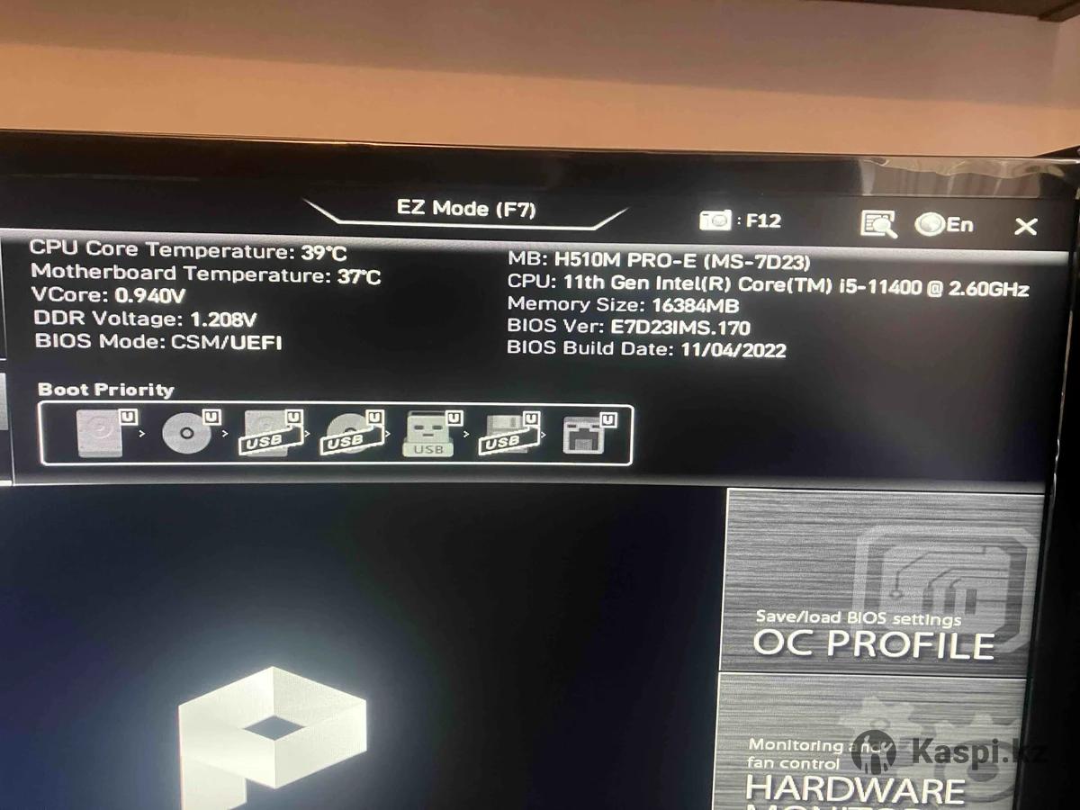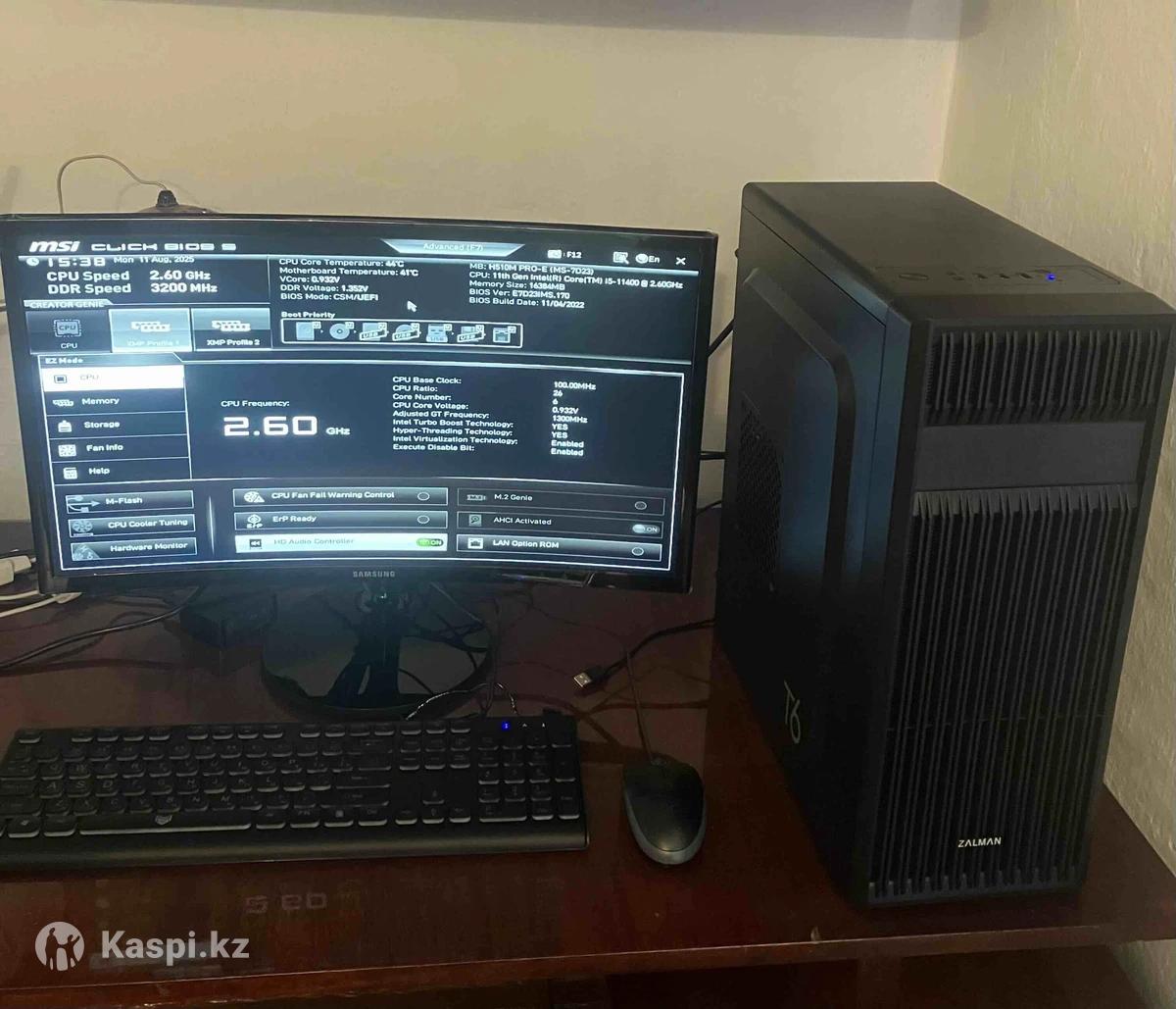 Продам настольный ПК, в комплекте монитор, клавиатура, мышь. - Материнская плата MSI Socket LGA1200 MSI H510M PRO-E 2DDR4 MicroATX - Процессор intel core i5-11400, Socket LGA1200, 2.6 ГГц или до 4.4 ГГц в режиме, 6 ядер, 12 потоков - Оперативная память 16 Гб, 2 модуля, Kingston KF432C16BBK2/16-SP FURY Beast Black 16GB Kit (2x8GB), DDR4-3200, CL16 DIMM, 1Gx8 - Игровая видеокарта ASUS DUAL DUAL-RX560-4G RADEON RX 560 (1024) 4 Гб GDDR5, 2 выхода DisplayPort v1.4, HDMI 2.0b 5120 x 2880 при подключении к цифровым разъемам, 2 вентилятора - SSD Samsung 870 QVO емкость 1 Тб - Блок питания be quiet! SYSTEM POWER 10 550W 550 Вт - Кулер Intel LGA 115x 1200 - Монитор 23.5" (59.7 см) Samsung C24F390FHM, 1920 x 1080, частота 60 Гц - Корпус Zalman T 6, черный