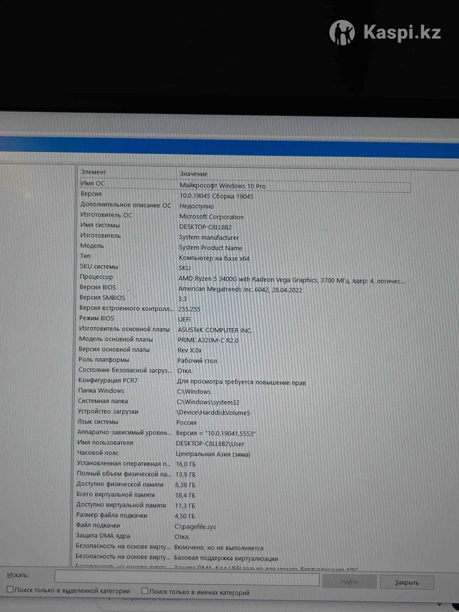 Процессор: AMD Ryzen 5 3400G with Radeon Vega Graphics Видеокарта: AMD Radeon(TM) RX Vega 11 Graphics NVIDIA GeForce GTX 1660 Ti ОЗУ: 16 GB, DDR 4, 3700MHz SSD: 477 GB HDD: 1.8 TB Отлично подходит для игр таких как: Dota 2, CS:GO 2, Gta V и т.д Сам иногда играл, но часто работал в Fl Studio 20 Состояние хорошее! Просьба не звонить — ПИСАТЬ!