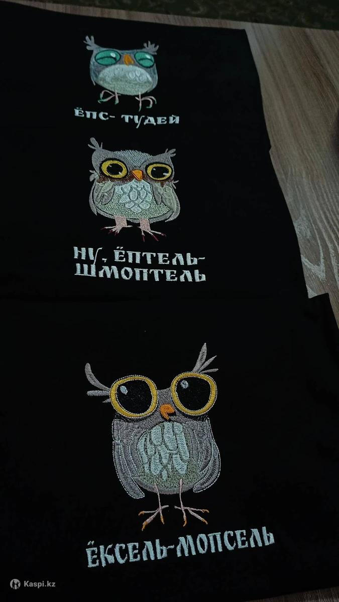 Вышивка любой сложности именная и с юмором!)))На худи, футболки,свитшоты, халаты.А так декоративная на подушки и корпешки. Именная футболка 7000тг Индивидуальный дизайн от 3000 тг Логотипы от 1000тг