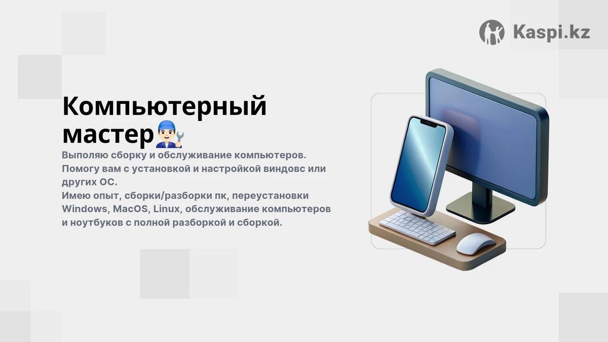 Обслуживание пк, разборка и сборка пк, помощь в подборе комплектующих.