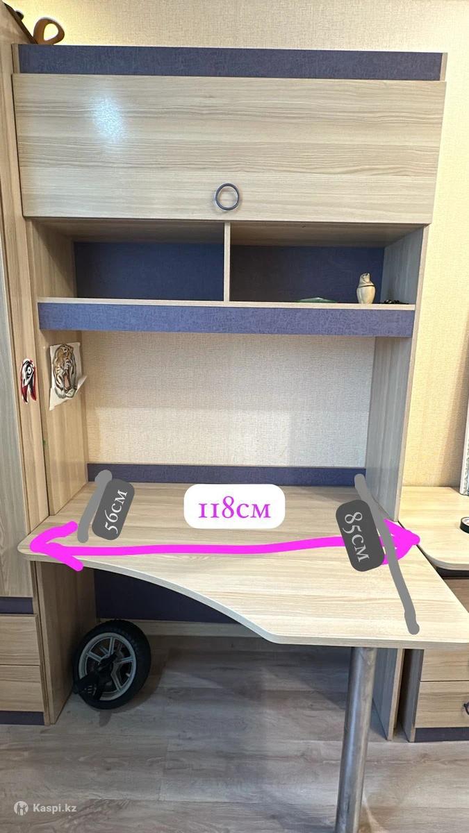 Есть угловой стол с навесными шкафами за 19 тыс 15 тыс тг есть стол прямой 15 тыс Тумба под столом 5 тыс
