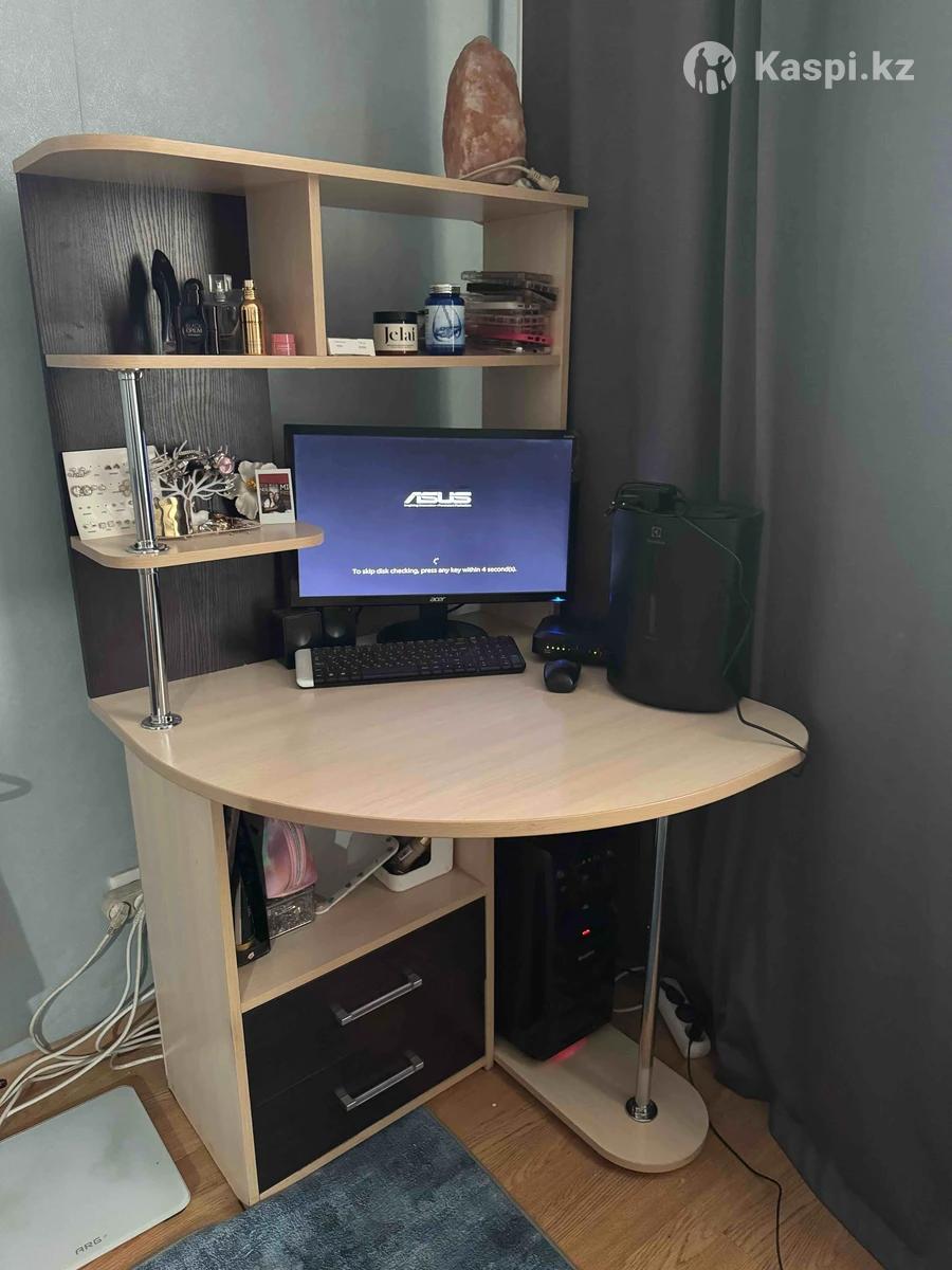 О цене договоримся Продаю компьютерный стол в хорошем состоянии. Высота 150 см Ширина 80 см Длина 80 см Идеально подойдет для работы, учебы или домашнего компьютера. Есть полки, надстройка для хранения, два вместительных выдвижных ящика и отдельное место под системный блок. Материал — ЛДСП, цвет — светлый дуб с темными вставками. Конструкция устойчивая и компактная. Есть небольшие царапины но в целом стол выглядит аккуратно и ухоженно.