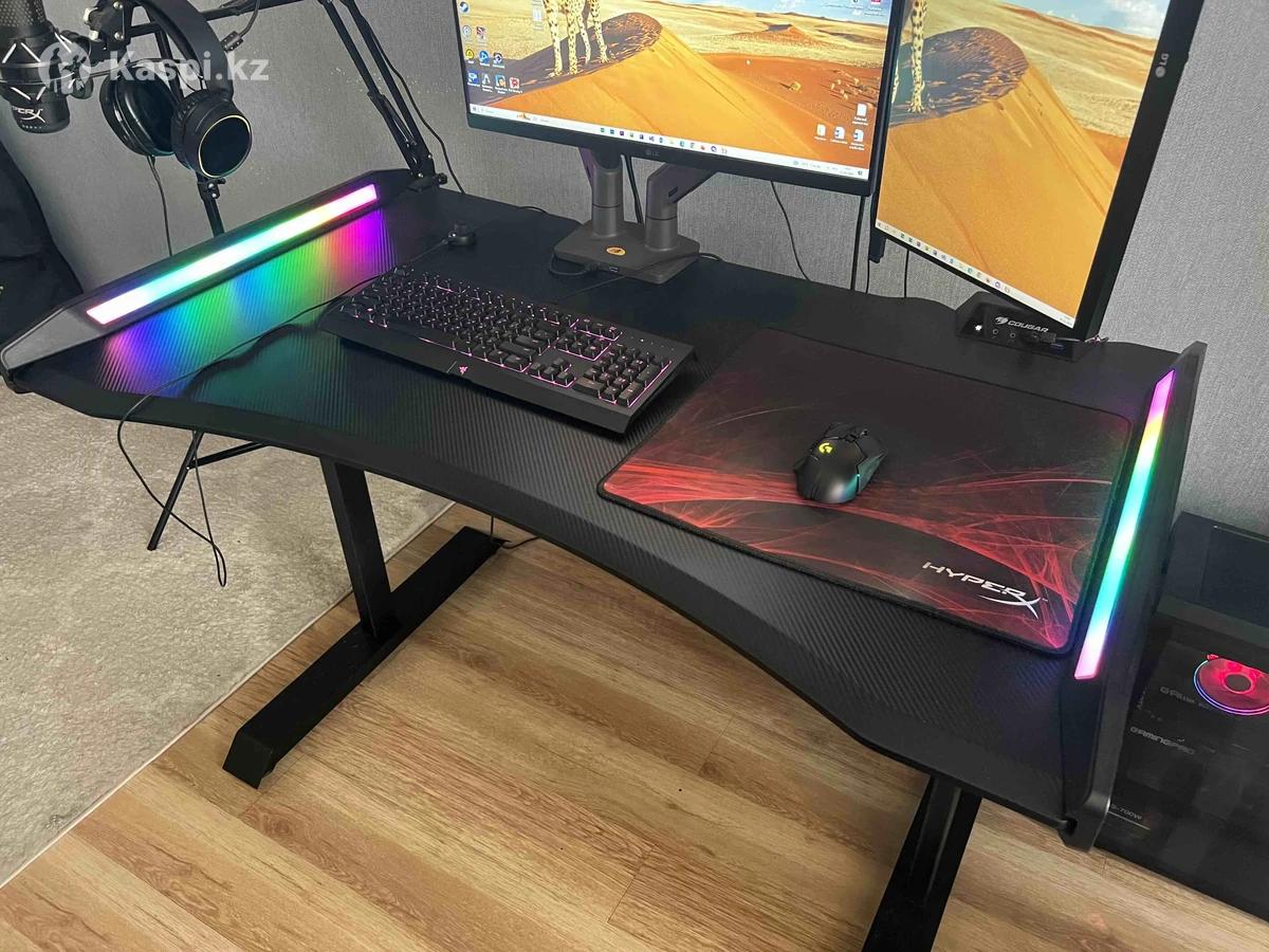 Компьютерный стол cougar mars 120. Качество б/у, но в отличном состоянии. Покупался на каспи чуть больше года назад. Продаю в связи с переездом. Ширина: 120 см Глубина: 74 см Высота: 81 см Выдерживает нагрузку до 150 кг Подсветка: ARGB, 14 статичных цвета и 1 градиент (как на фото) В комплекте осталась коробка.