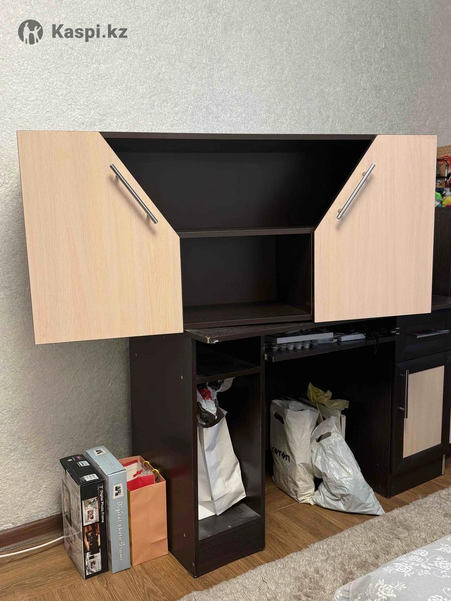 Компьютерный стол с шкафом над ним