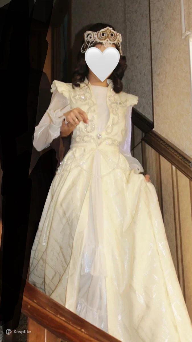 Очень красивый камзол Надевался только один раз на Кыз Узату Цвет: Айвори (золотисто бежевый) Размер: S-M Идет сам камзол и ремень такой же Украшено жемчужинками и камушками Ну очень красиво выглядит Материал очень хороший плотный Очень качественный Ранее ни у кого не видела такой камзол на узату , будете отличаться самой красивой